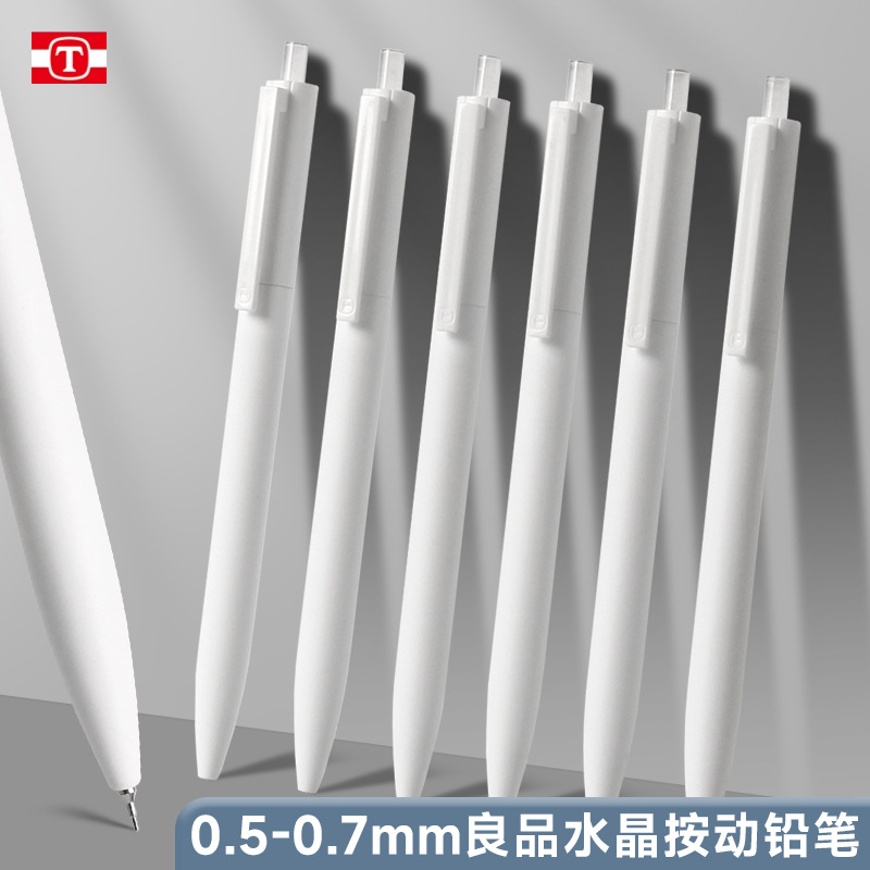 Tianzhuo Liangpin 심플한 순백색 무인쇄 스타일 샤프펜슬 멋진 학생용 0.5/0.7 자동연필 무료