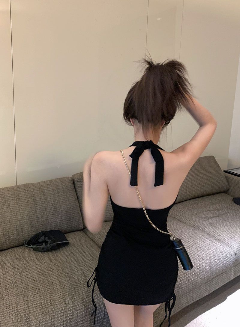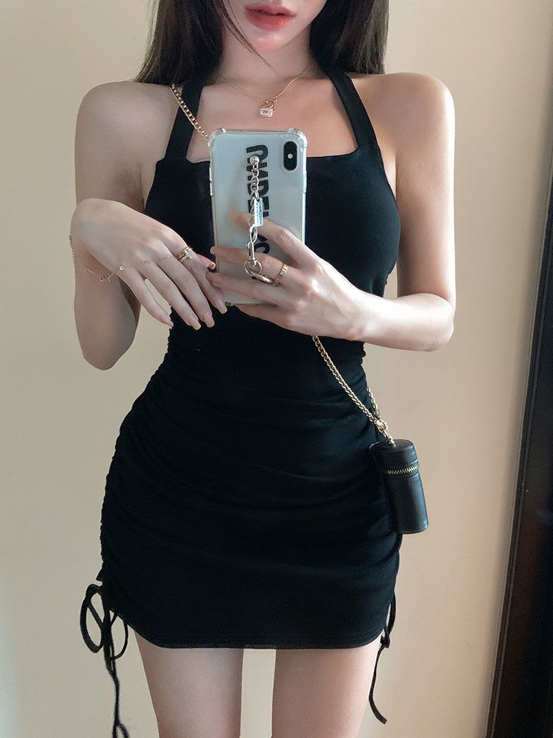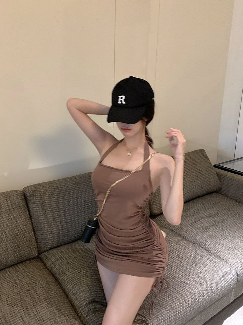 순수한 달콤하고 매운 여성 엉덩이 스커트 여름 2025 새로운 허리 주름 독특한 스트랩 원피스스토어 가기