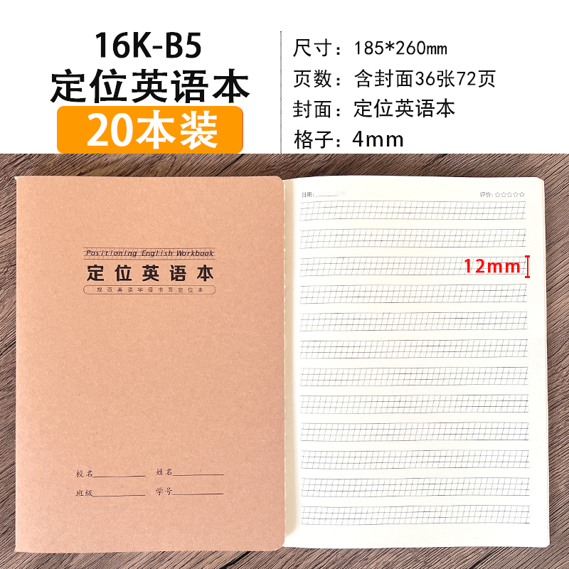 포지셔닝 영어 도서 초등학생을위한 16K 두꺼운 크래프트 종이 커버 영어 쓰기 얇은 고정형 숙제 도서 캘리그라피 연습 도서스토어 가기