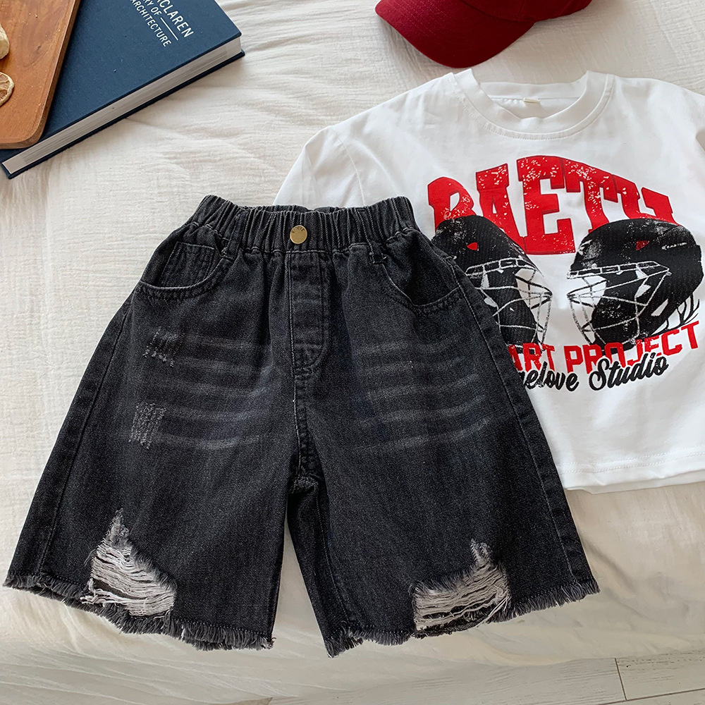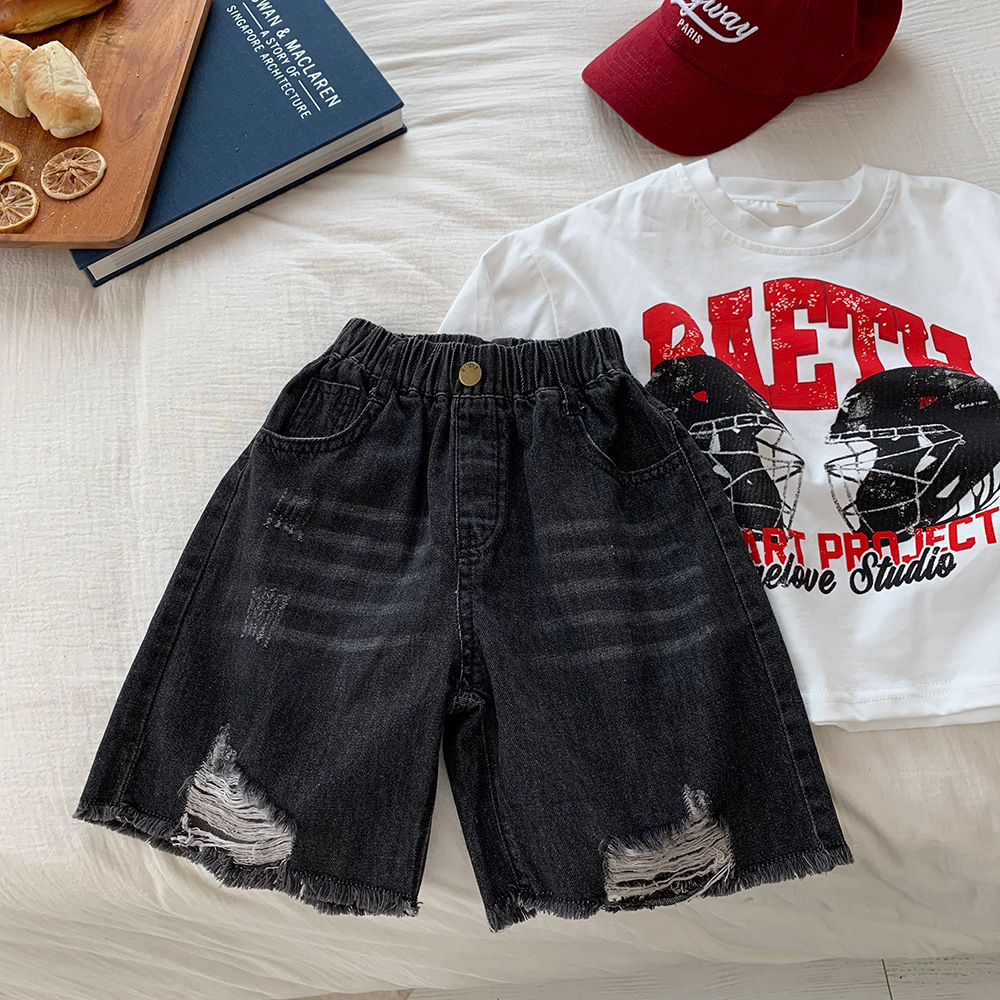 어린이 데님 반바지 소년 바지 아기 루즈 랩 바지 2025 여름 새로운 올 매치 통기성 스트레이트 바지스토어 가기