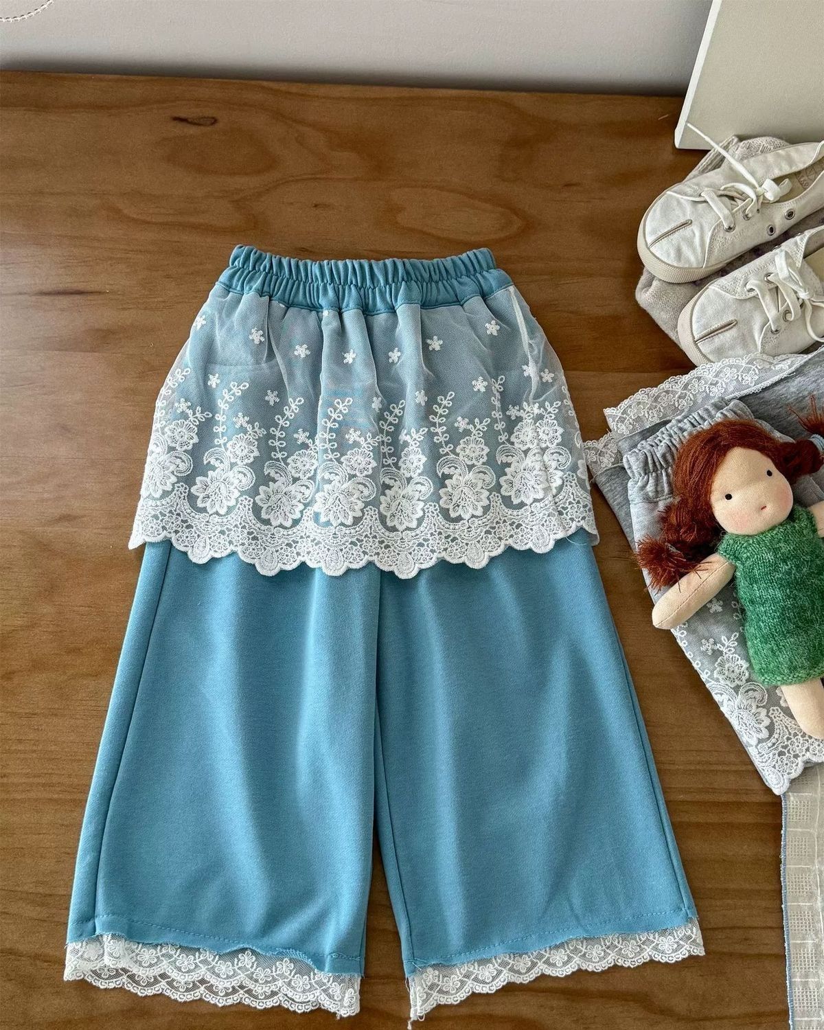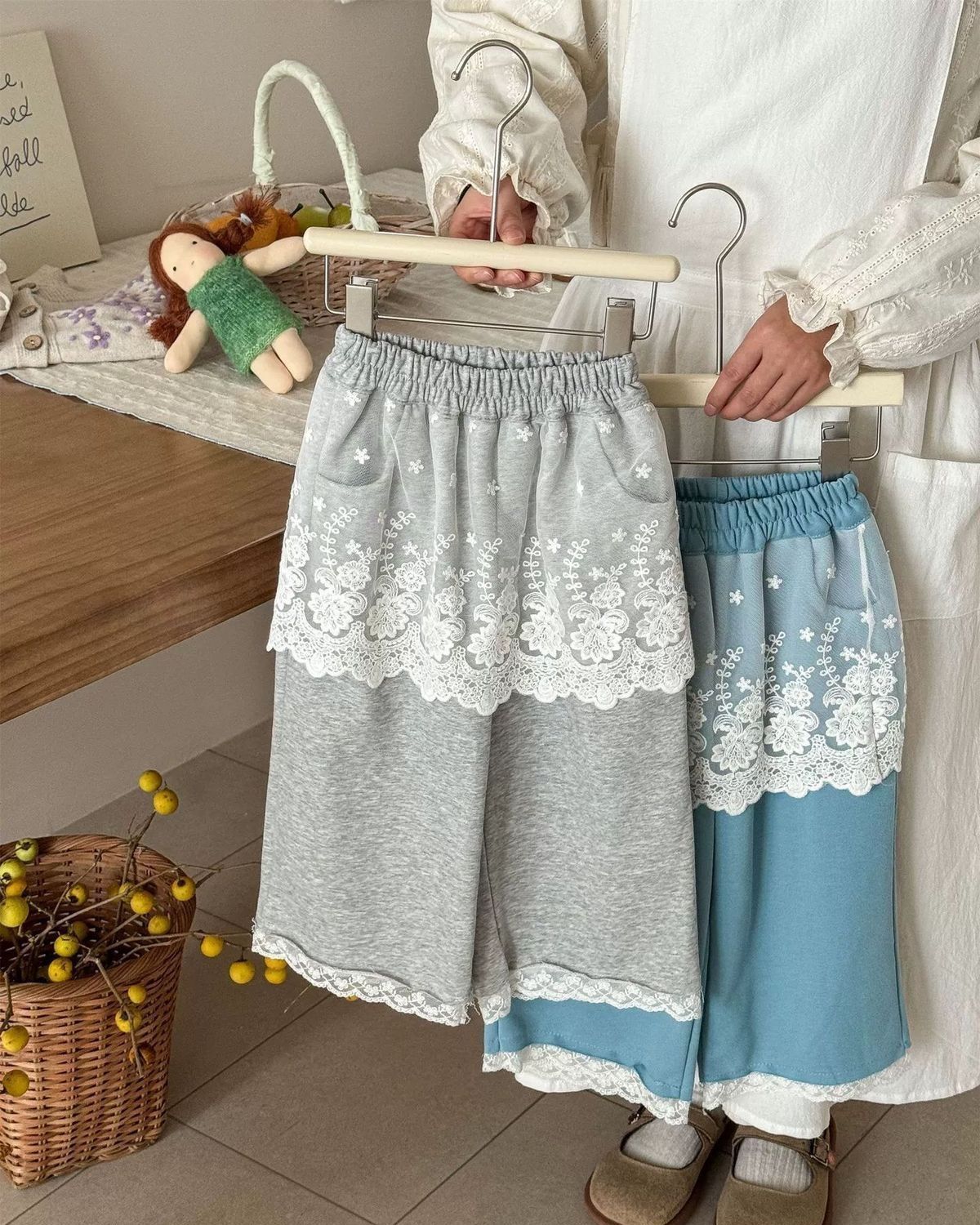 여아 레이스 스플라이스 레이스 스트레이트 팬츠 봄 신작 한국 스타일 아기 소녀 귀여운 루즈 캐주얼 바지 트렌디