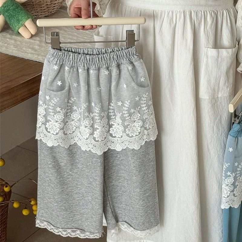 여아 레이스 스플라이스 레이스 스트레이트 팬츠 봄 신작 한국 스타일 아기 소녀 귀여운 루즈 캐주얼 바지 트렌디스토어 가기