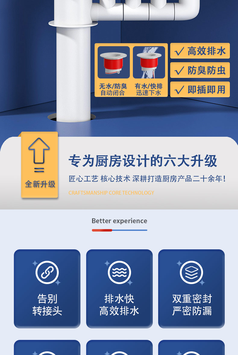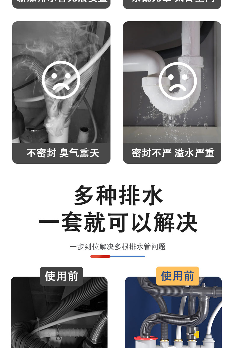 ✅ 주방 하수구 정수기 3방향 연결부 싱크대 식기세척기 배수구 3방향 탈취제