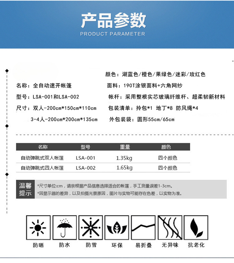 • ●단일 도어 위장 색상 + 방습 쿠션 + 공기 주입식 쿠션, 자동 빠른 개방●