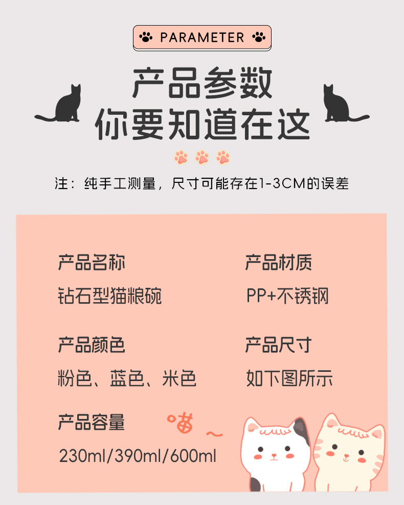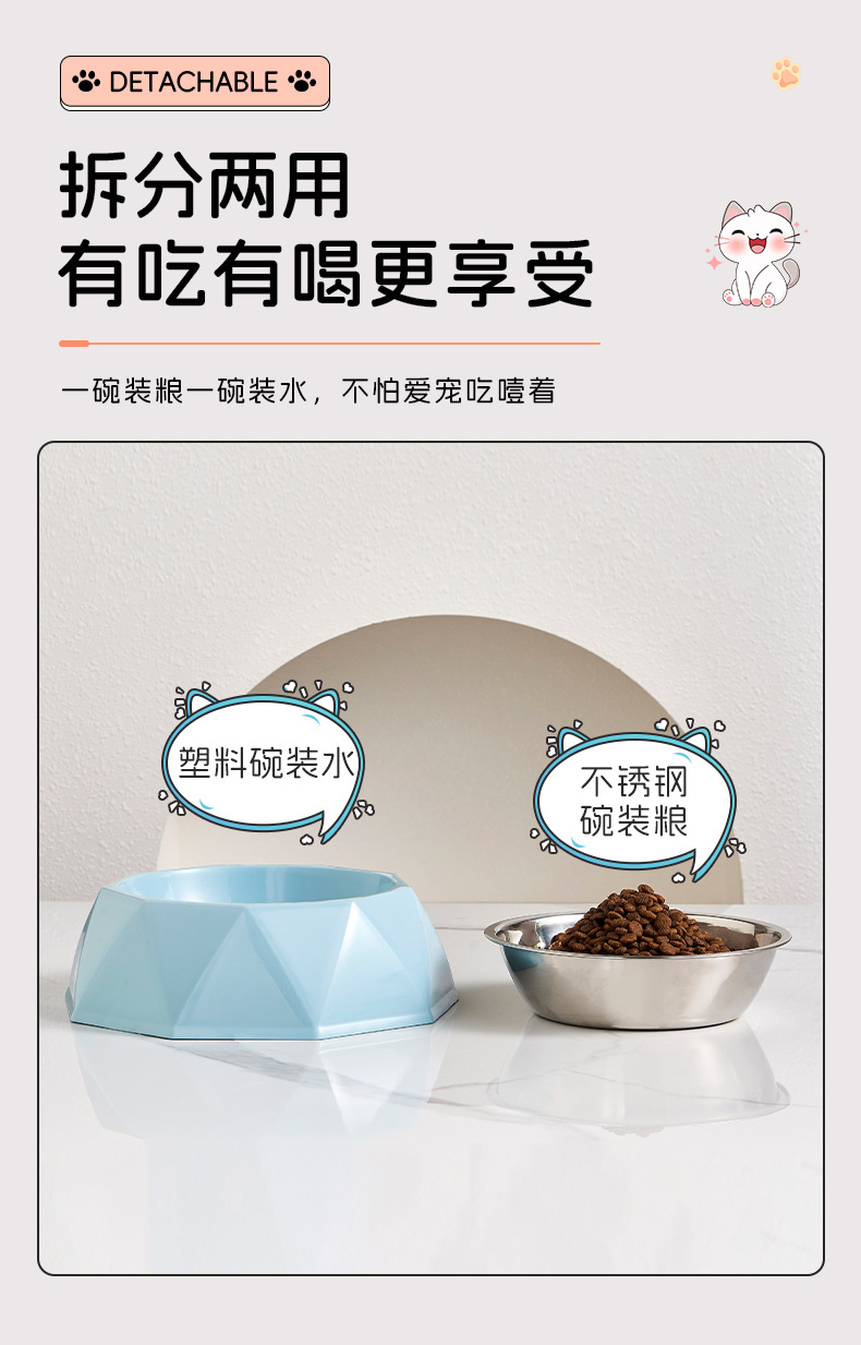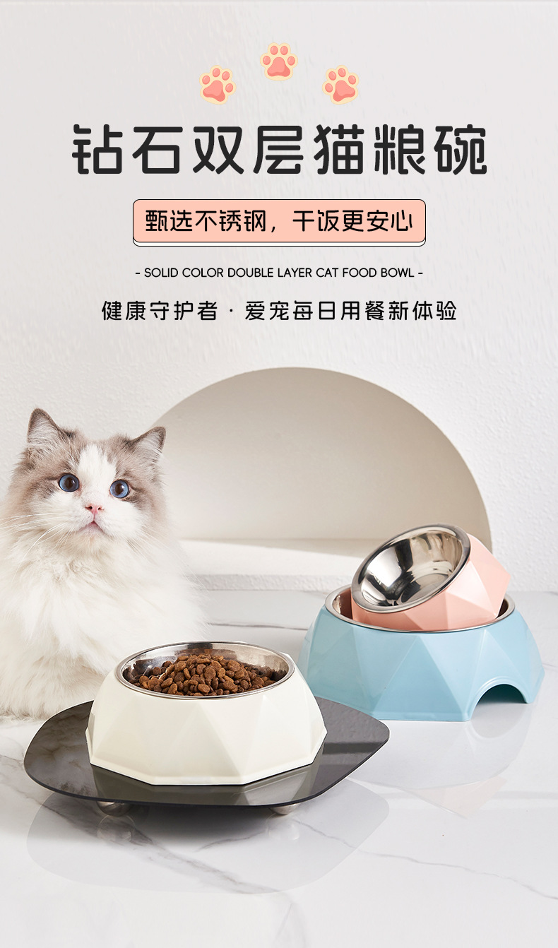 애완동물 고양이 그릇 스테인리스 강아지 그릇 마카롱 귀여운 흘림 방지 식기 고양이와 강아지 공용 다이아몬드 그릇 명절 선물스토어 가기