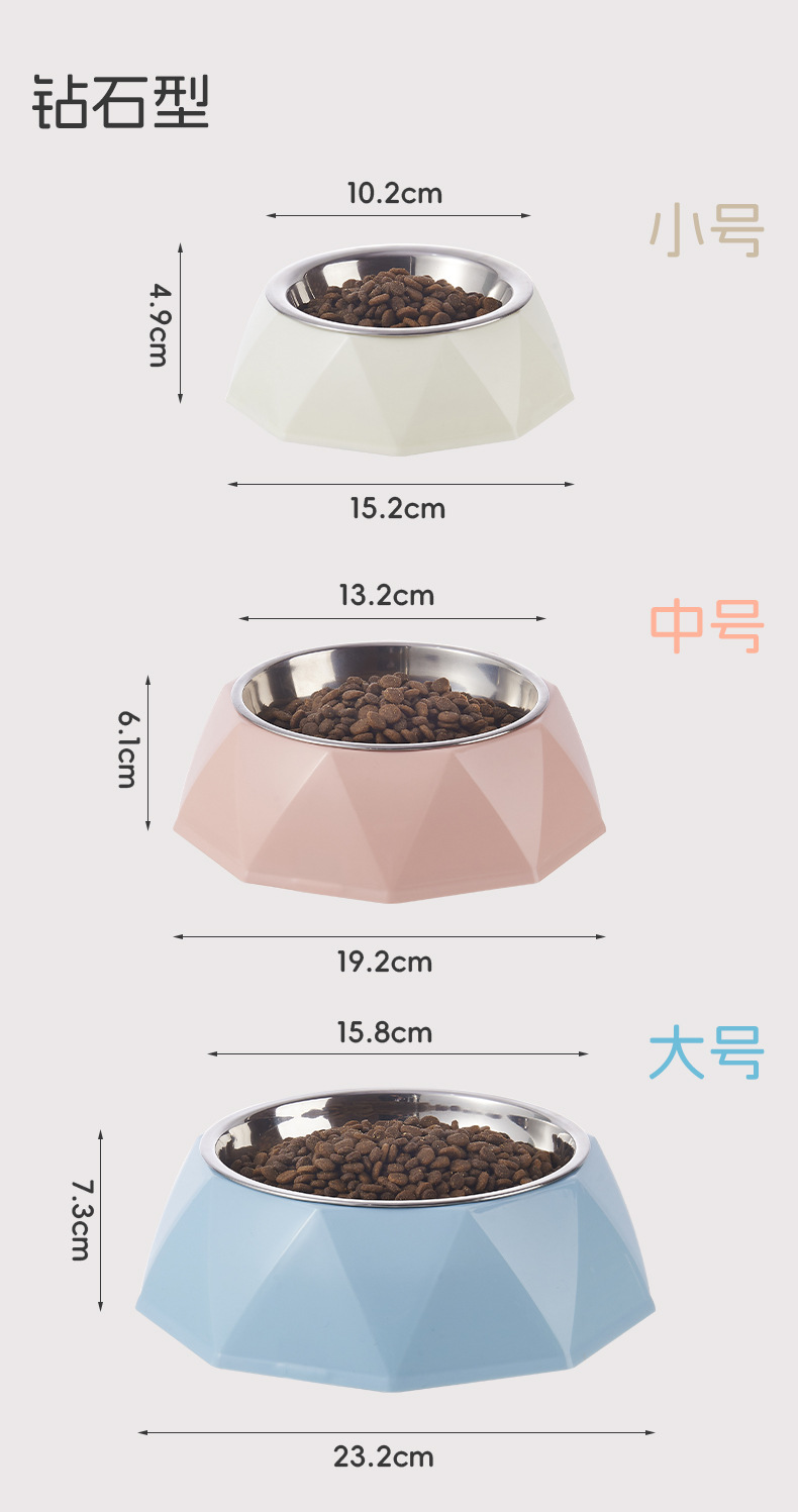 애완동물 고양이 그릇 스테인리스 강아지 그릇 마카롱 귀여운 흘림 방지 식기 고양이와 강아지 공용 다이아몬드 그릇 명절 선물