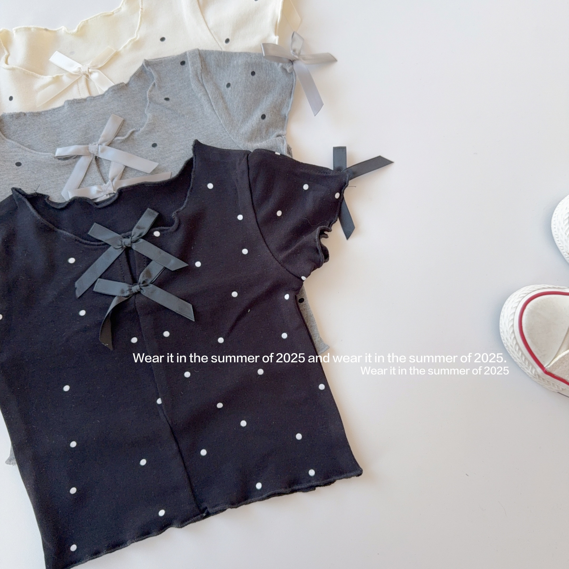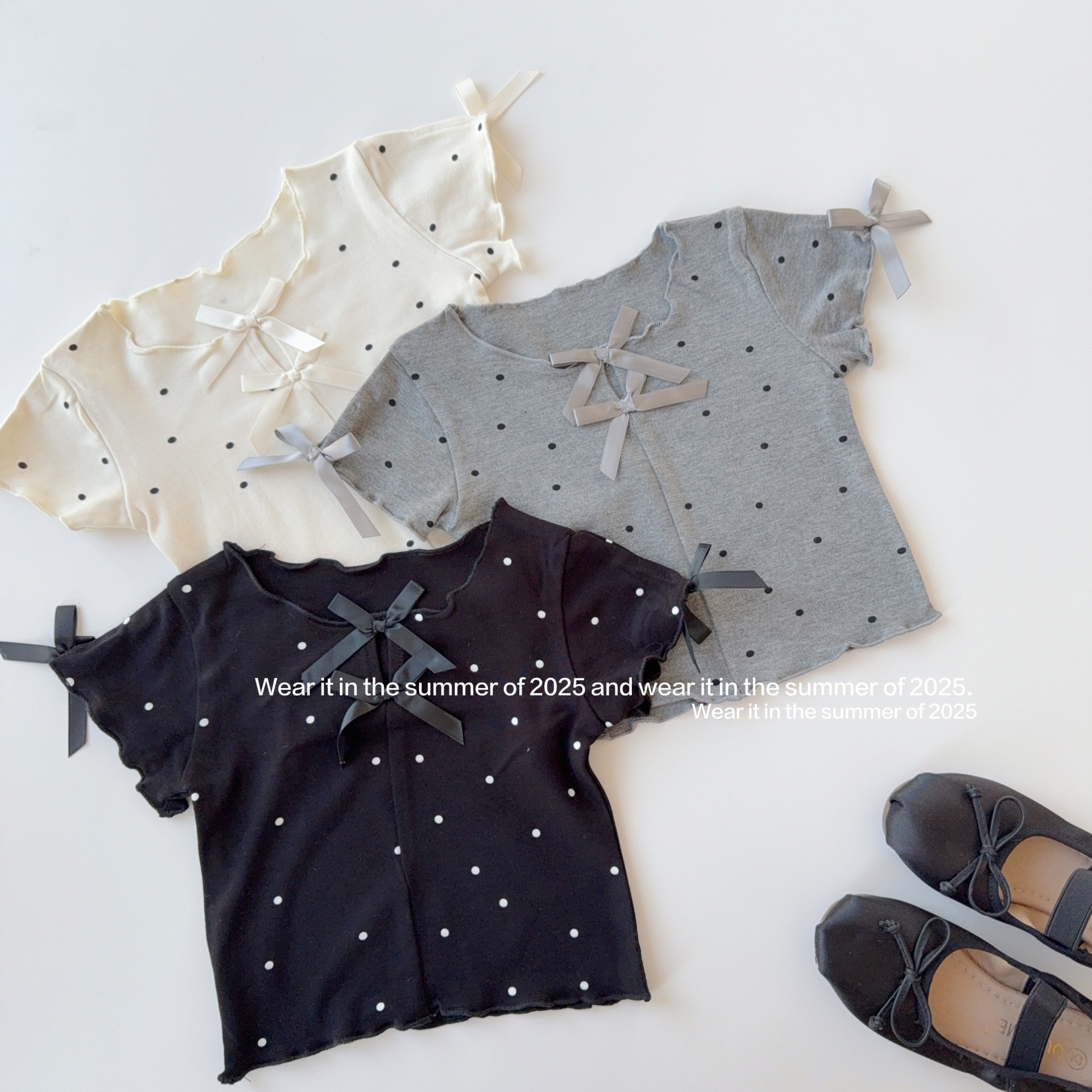 여름 현금 반팔 티셔츠 2025 새로운 어린이 폴로 도트 보우 쇼트베이스 레이어 셔츠 탑 웨스턴 스타일 올 매치스토어 가기