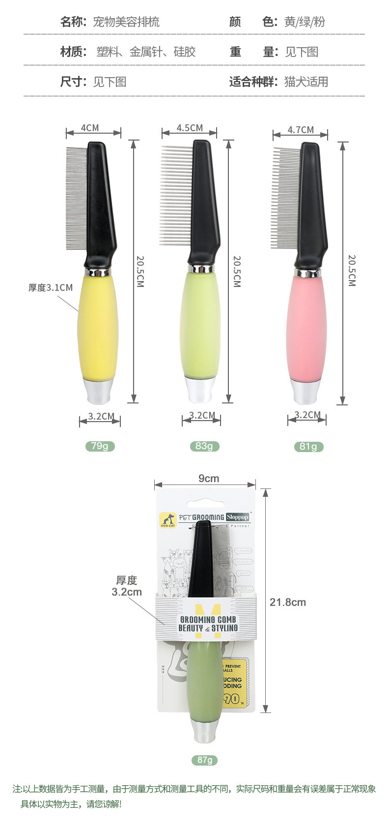 애완동물 빗, 실리콘 매듭 빗, 털 제거 뷰티 니들 빗, 푹신한 헤어 빗, 테디 골든 리트리버 개 빗