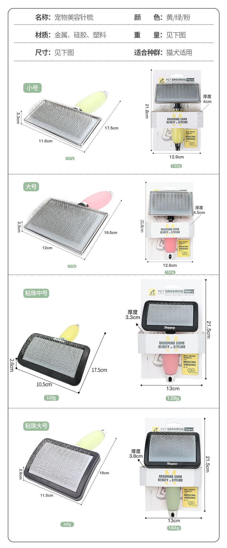 애완동물 빗, 실리콘 매듭 빗, 털 제거 뷰티 니들 빗, 푹신한 헤어 빗, 테디 골든 리트리버 개 빗스토어 가기