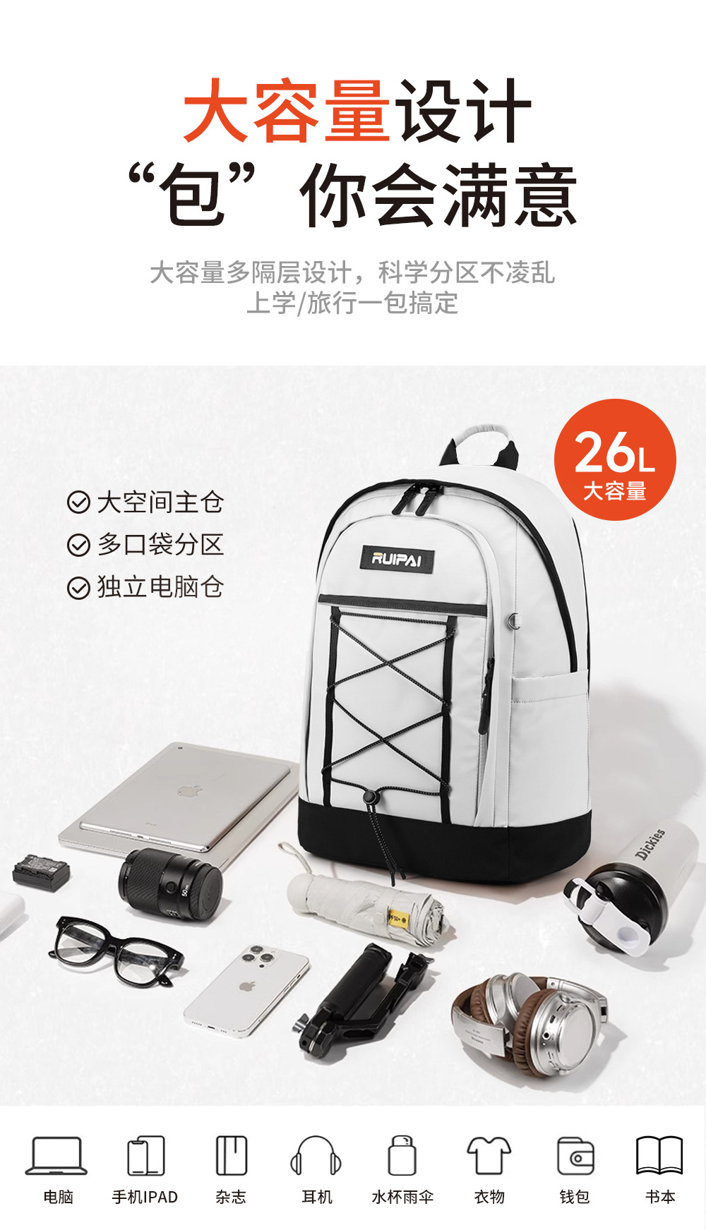 Rui 브랜드 배낭 대학생 스포츠 여행 배낭 대용량 통기성 방수 중학교 고등학교 학생 스쿨 가방스토어 가기