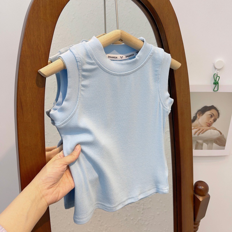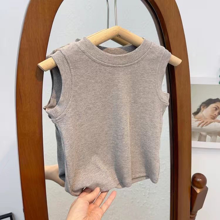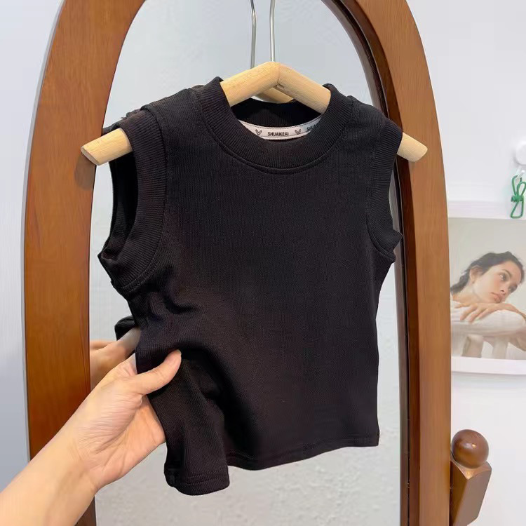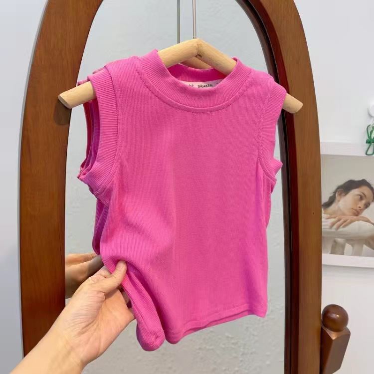 25 여름 소녀 한국 스타일 조끼 캐주얼 솔리드 컬러 올 매치 패션 슬링 중 큰 어린이 민소매 탑베이스 셔츠 트렌디스토어 가기