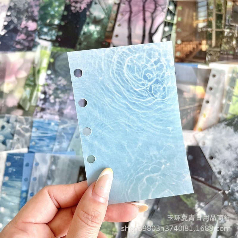 M5 높은 색 가치 물은 비 표식 풍경 내부 페이지 느슨한 잎 황산 종이 계정 책 반투명 재료 콜라주 그림 복사본을 떨어 뜨립니다.스토어 가기