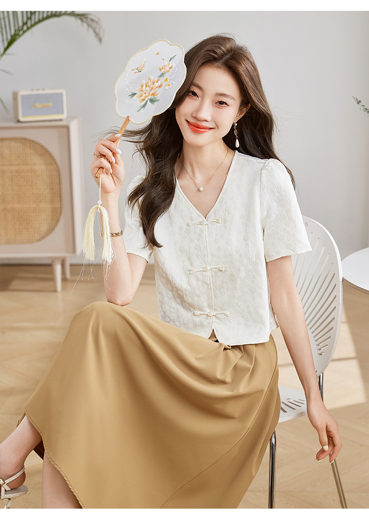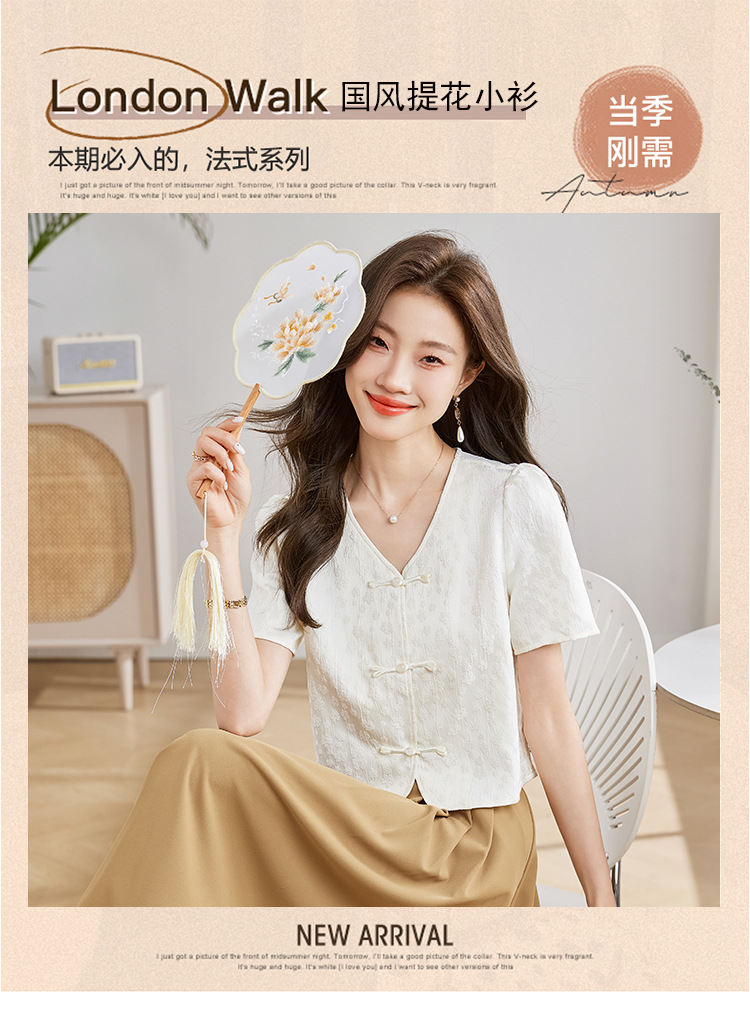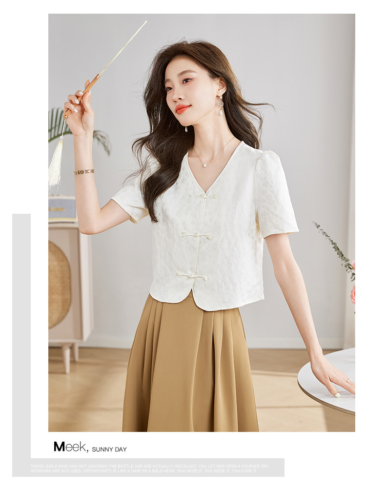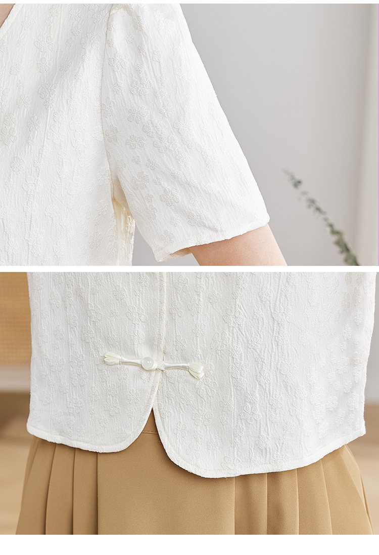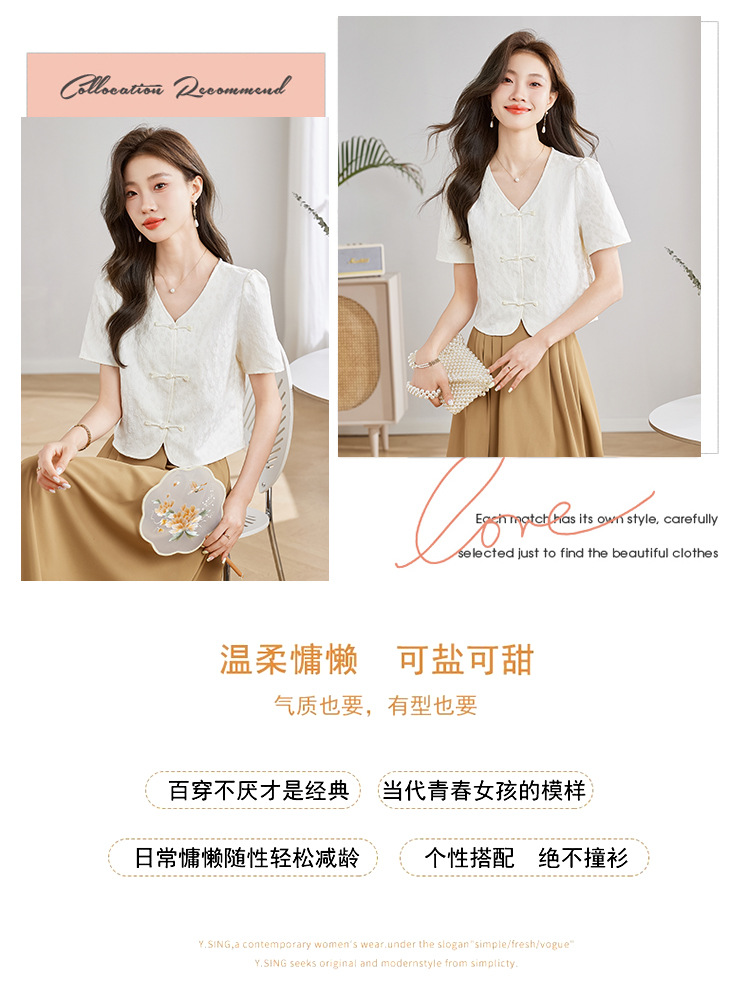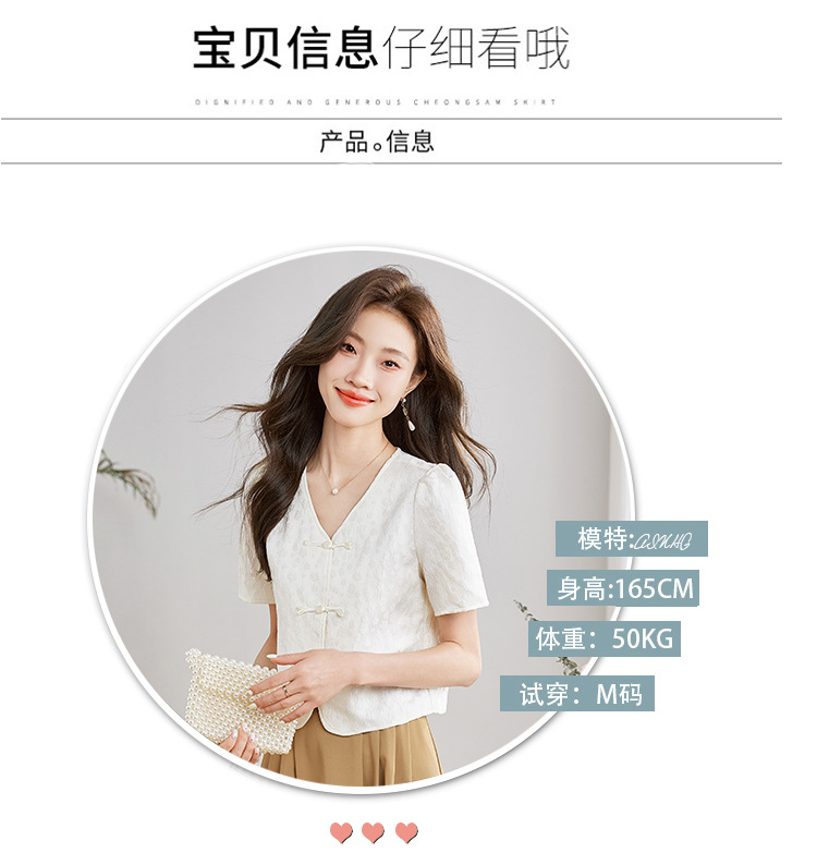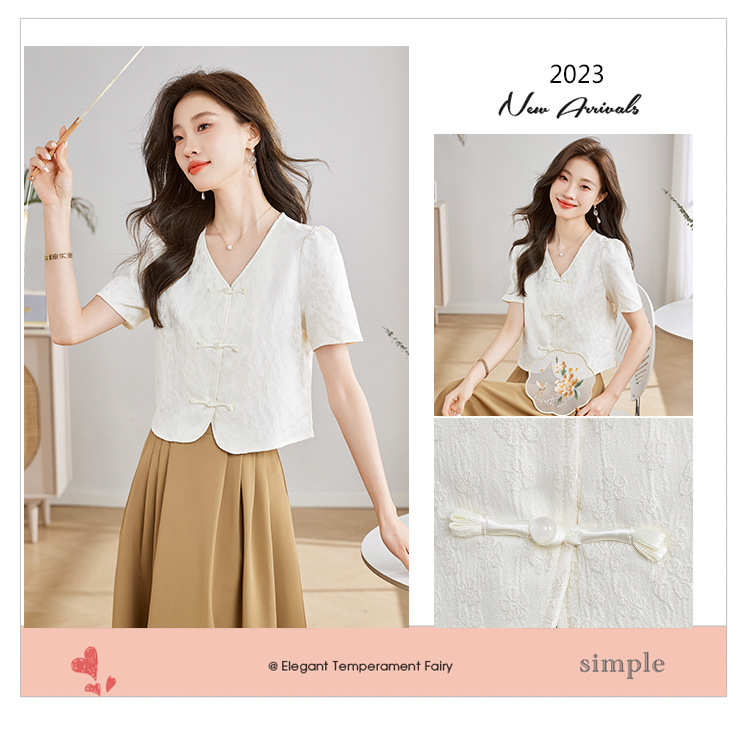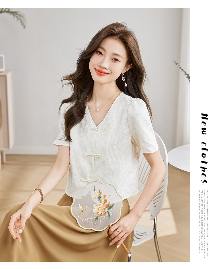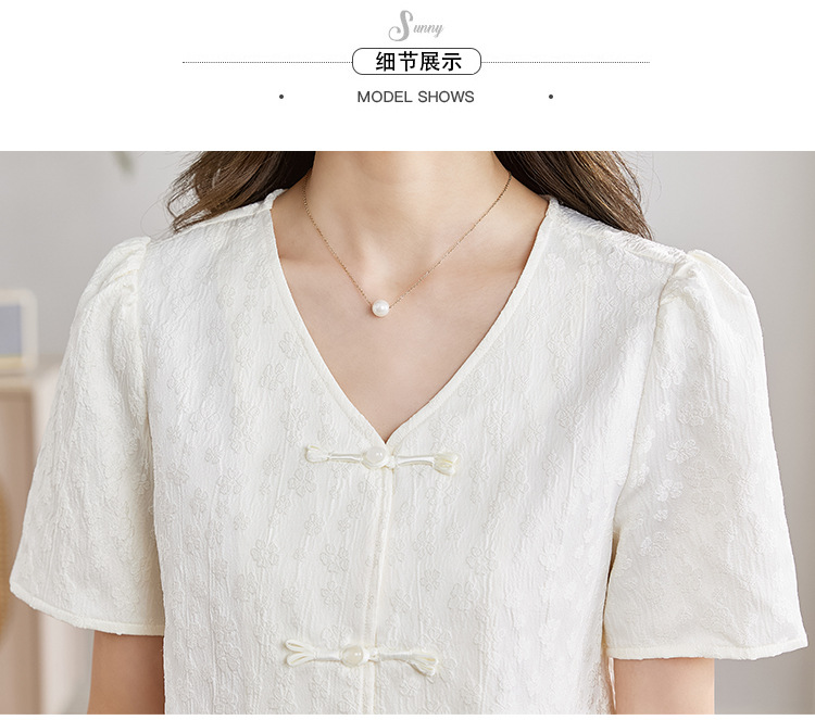 새로운 중국식 버튼 시폰 셔츠 여성용 하이 엔드 레트로 내셔널 스타일 V 넥 톱 2025 여름 새 셔츠스토어 가기