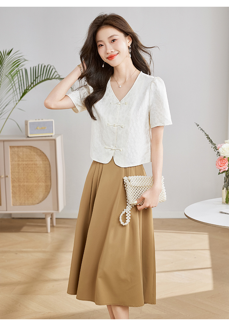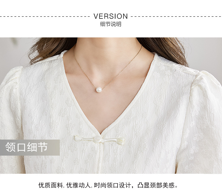 새로운 중국식 버튼 시폰 셔츠 여성용 하이 엔드 레트로 내셔널 스타일 V 넥 톱 2025 여름 새 셔츠