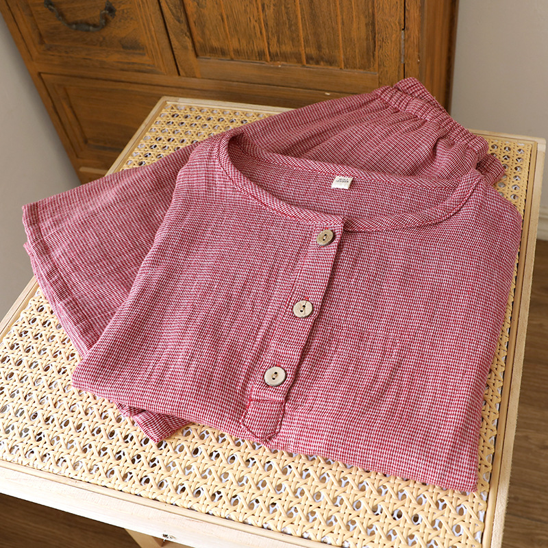 [평야] 커플의 면 2 층 면 원사 여름 홈 의류 세트 반팔 반바지 크루 넥 풀오버 아우터스토어 가기