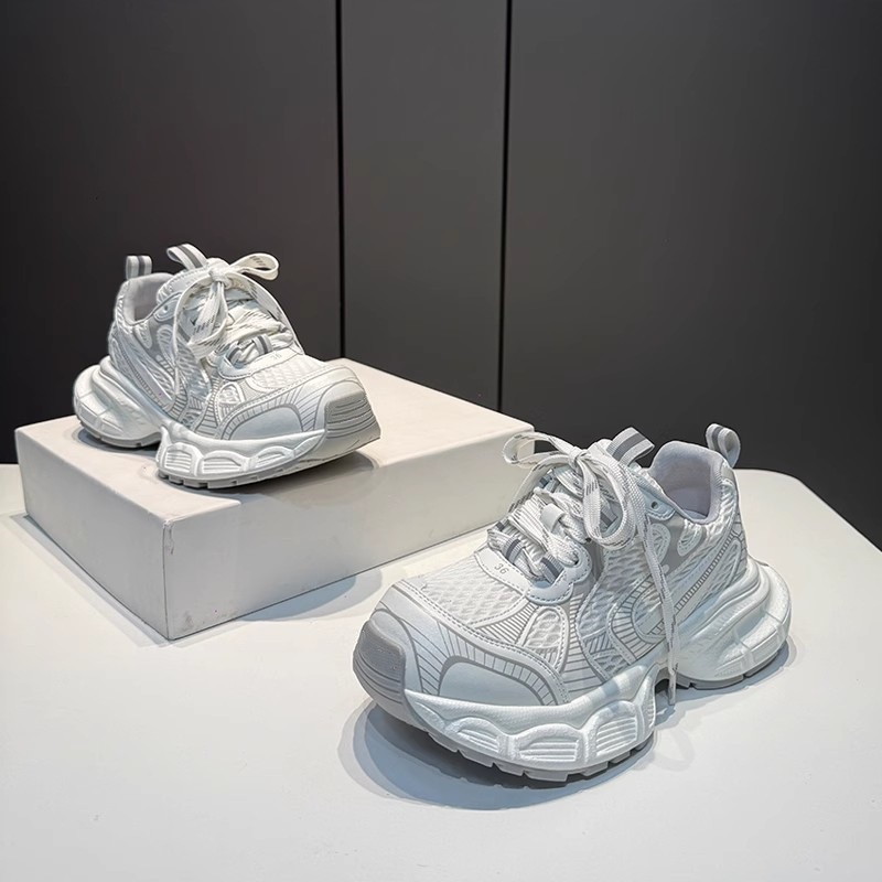 메쉬 통기성 패션 캐주얼 스포츠 신발 여성 두꺼운 밑창 경량 운동화 2025 봄 새로운 높이 증가 아빠 신발스토어 가기