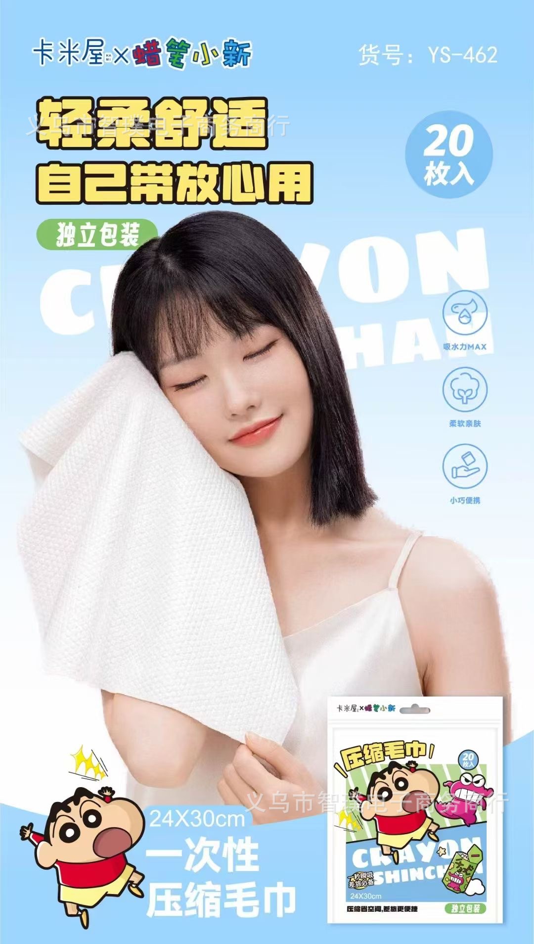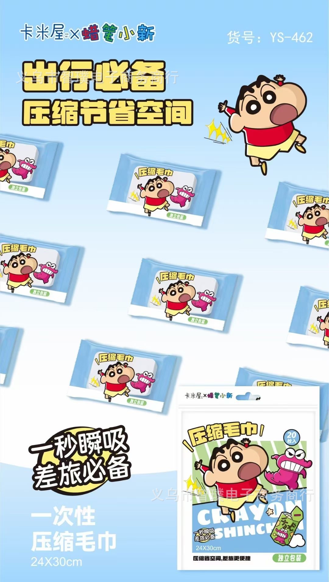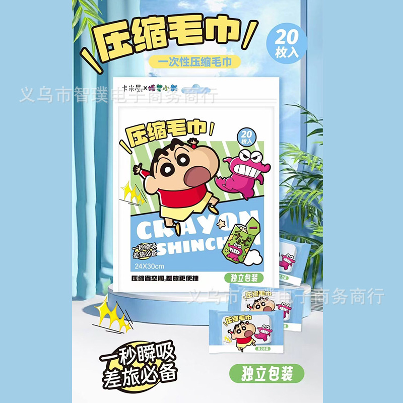 크레용 샤오신 일회용 압축 타월 여행 휴대용 만화 클렌징 타월 독립 포장 공장 도매 정품스토어 가기