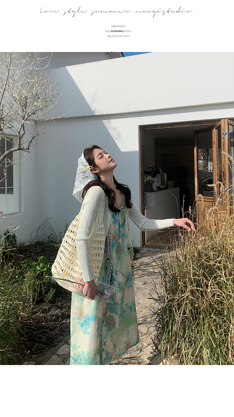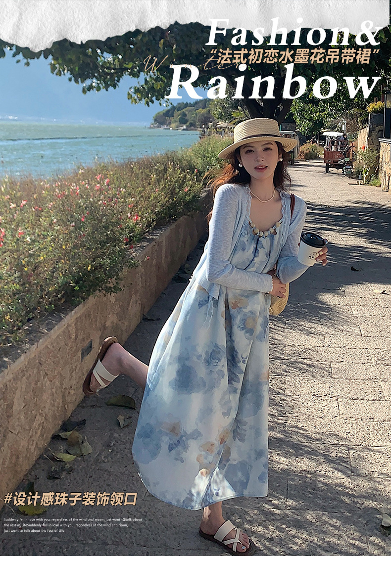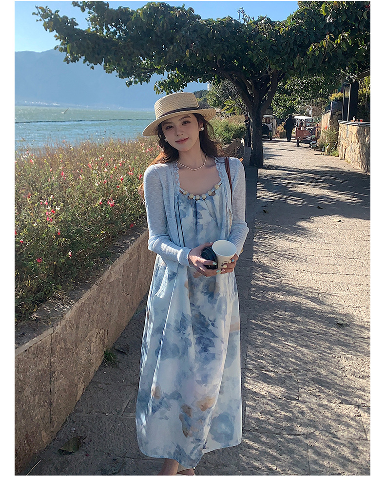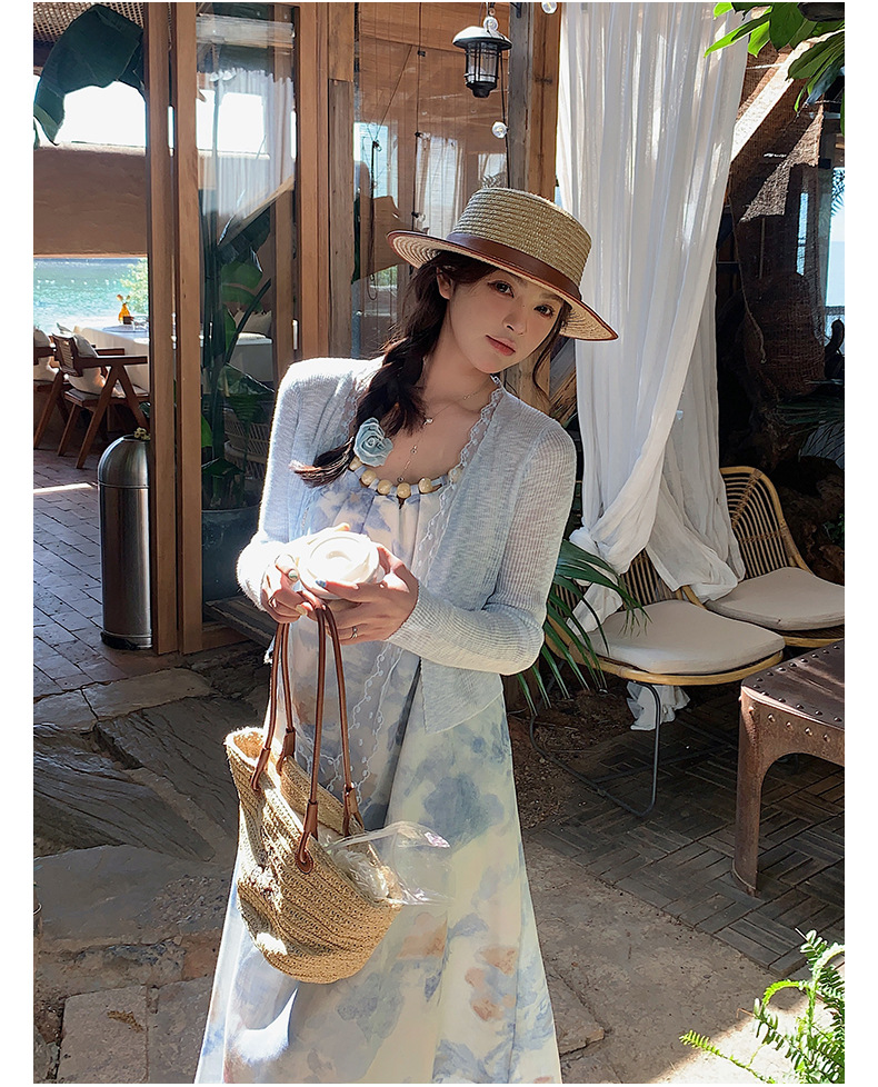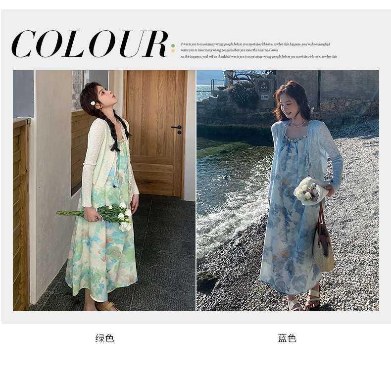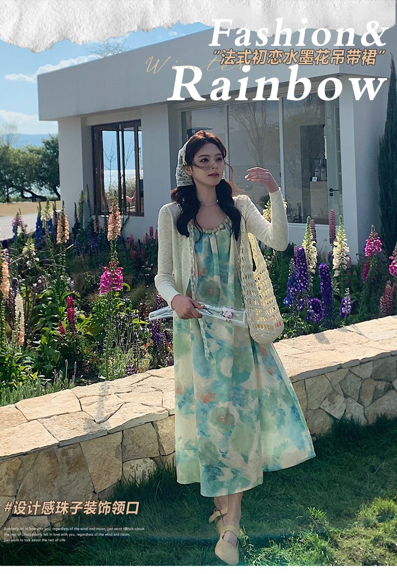 리얼 샷 플로랄 슬링 원피스 세트 2025 여름 할로우 카디건 해변 홀리데이 비치 롱 원피스 투피스 세트스토어 가기