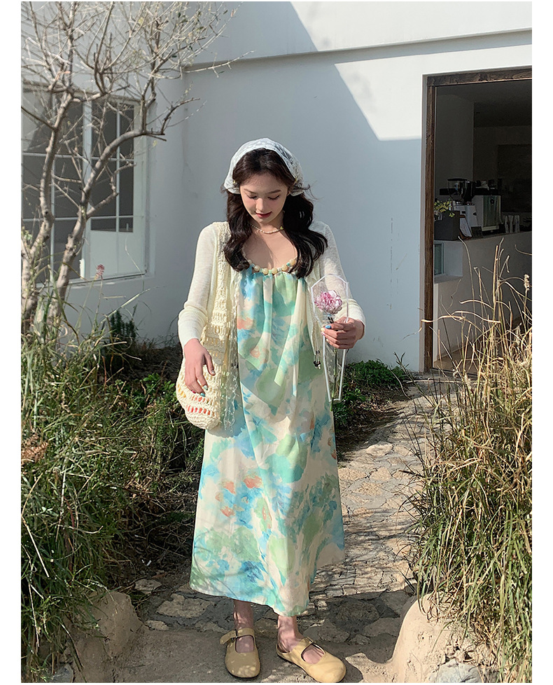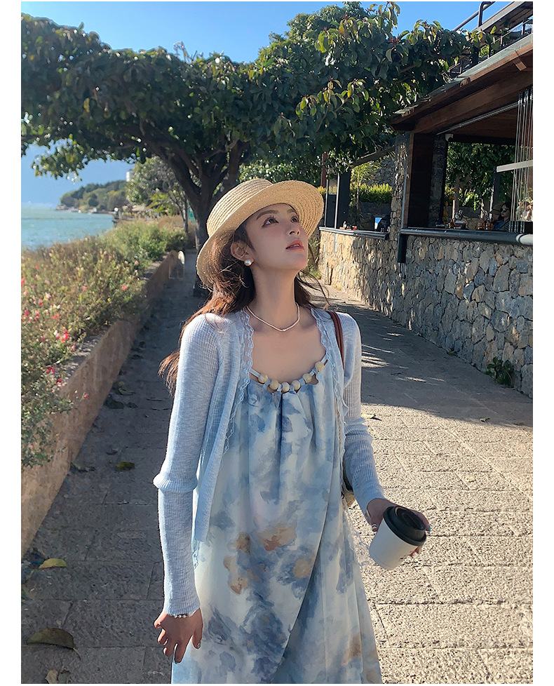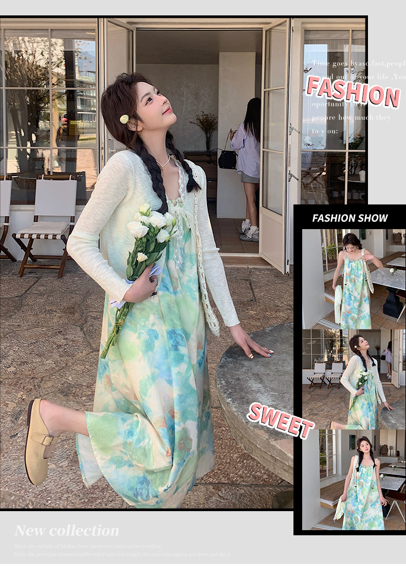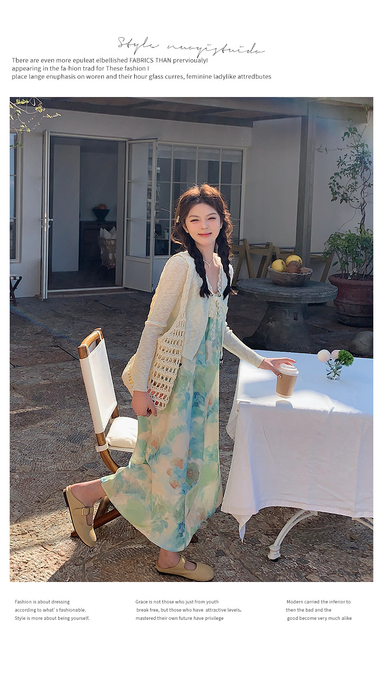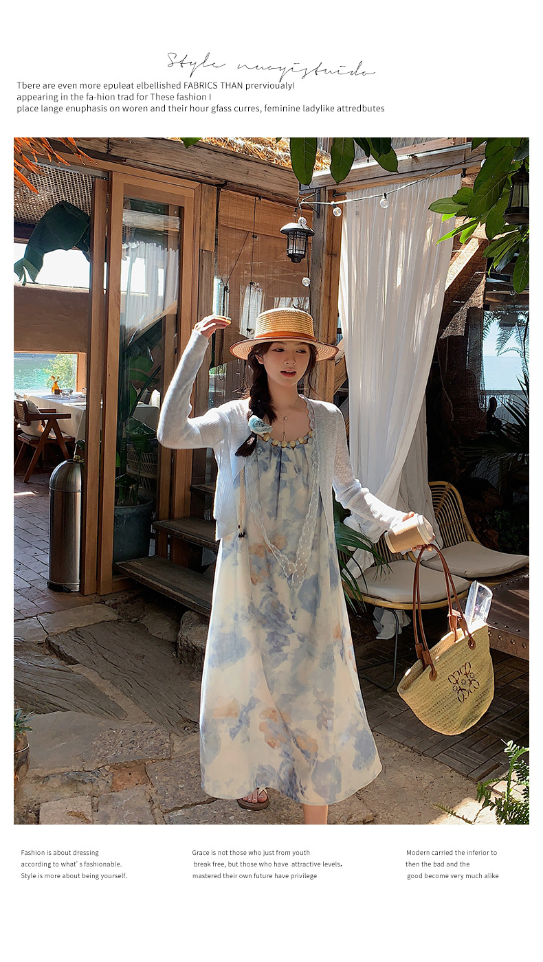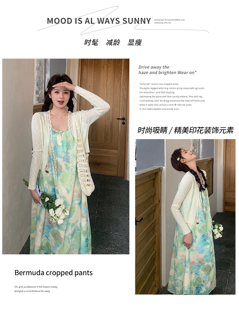 리얼 샷 플로랄 슬링 원피스 세트 2025 여름 할로우 카디건 해변 홀리데이 비치 롱 원피스 투피스 세트스토어 가기