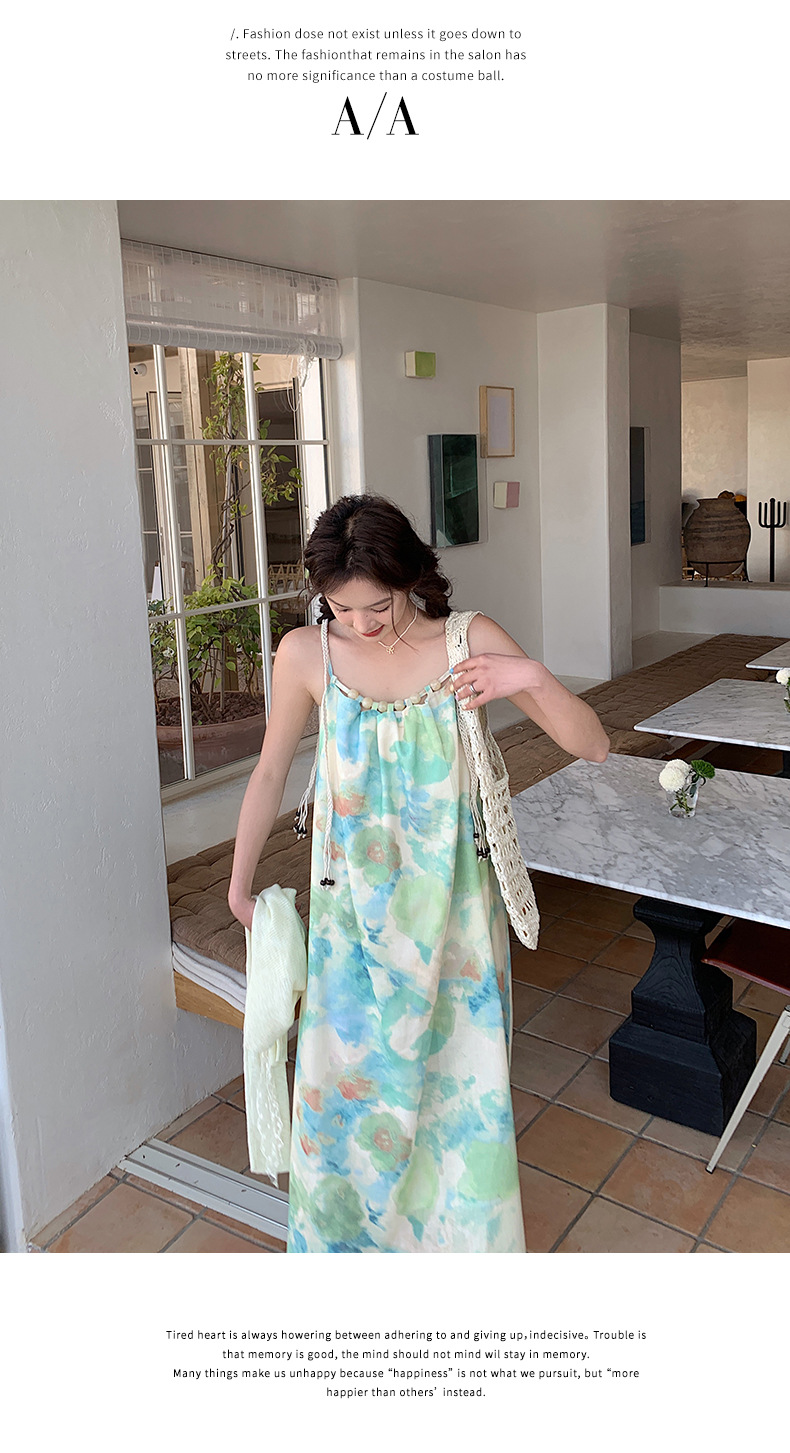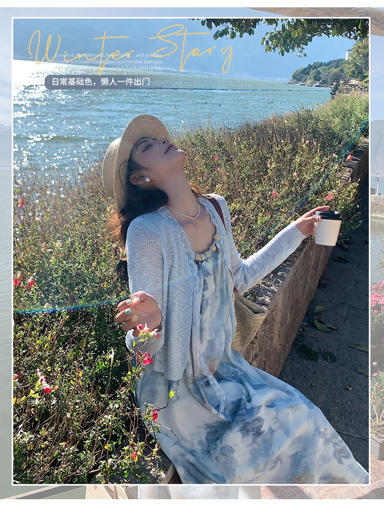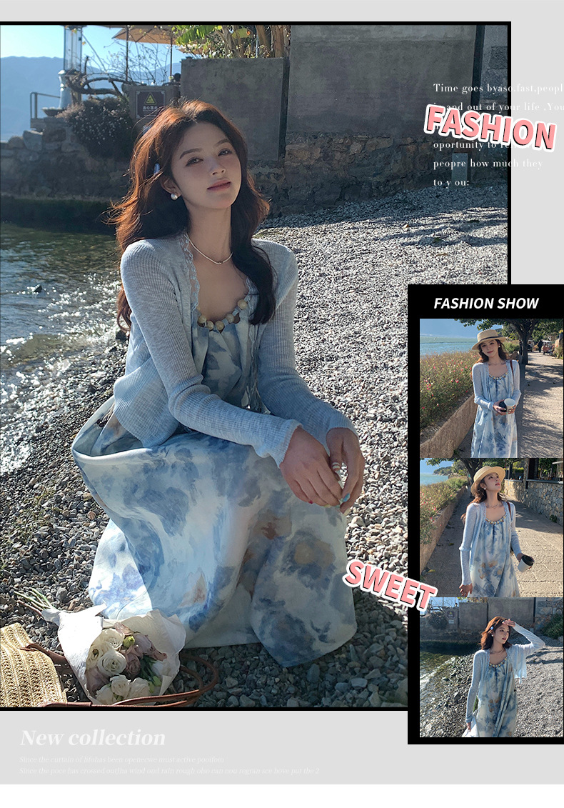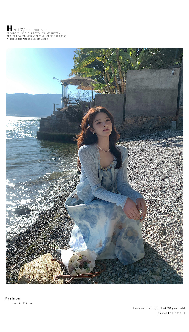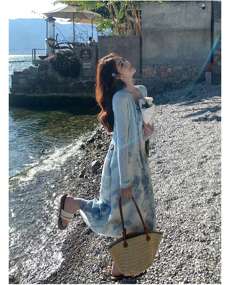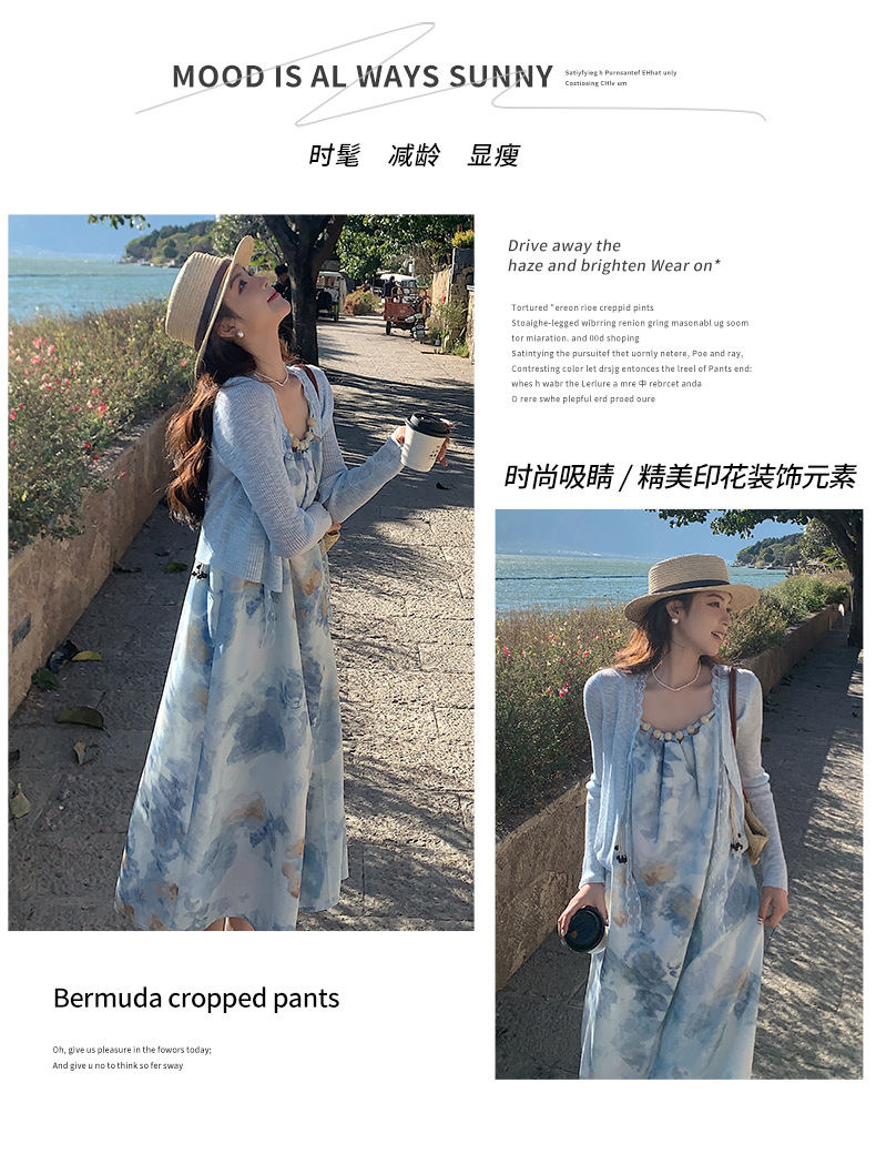 리얼 샷 플로랄 슬링 원피스 세트 2025 여름 할로우 카디건 해변 홀리데이 비치 롱 원피스 투피스 세트스토어 가기