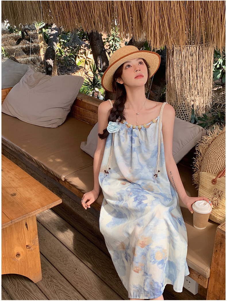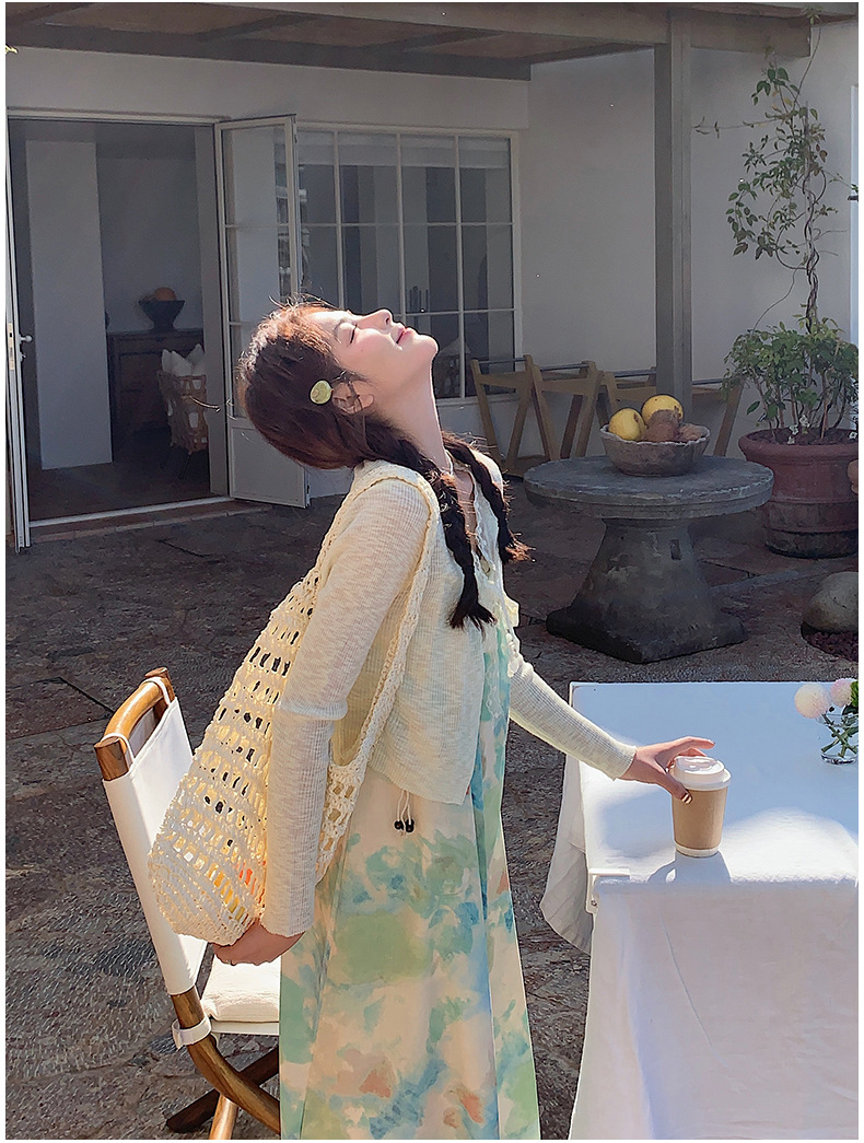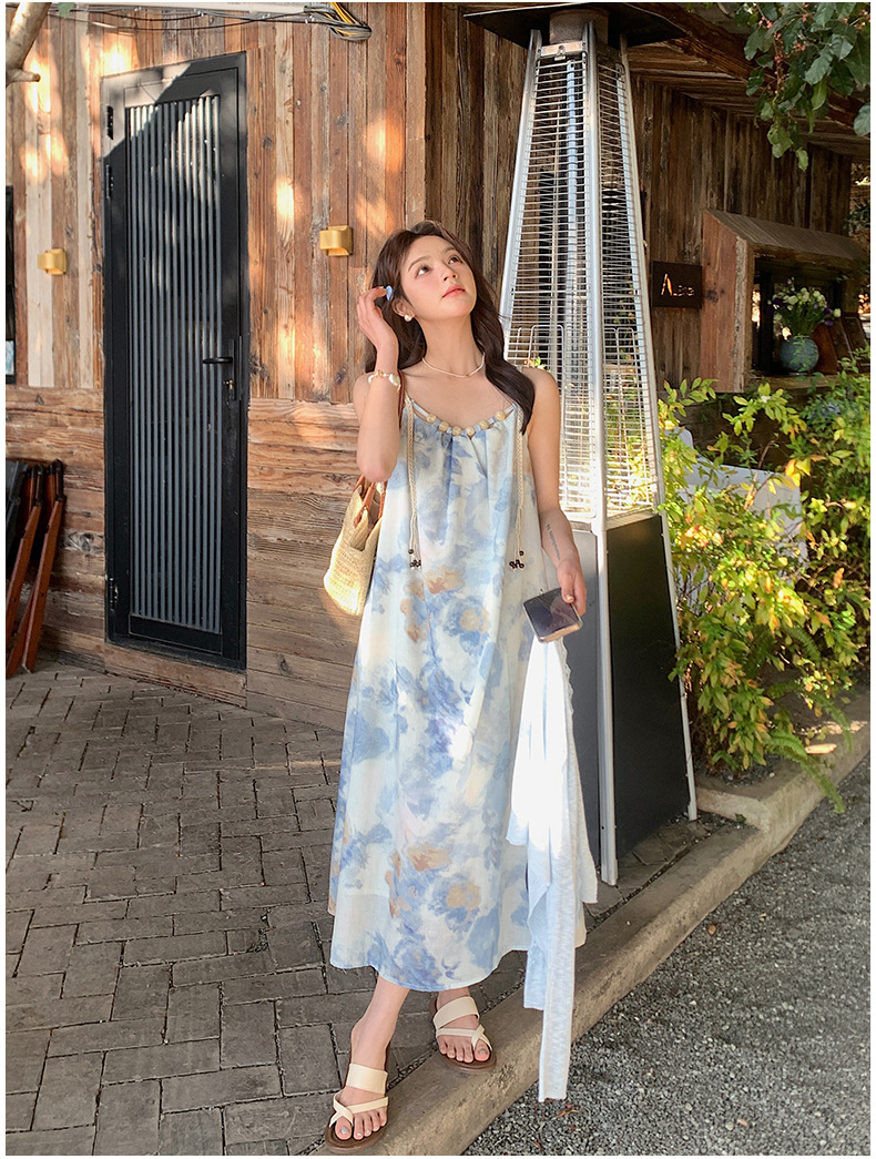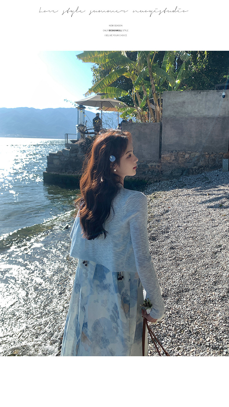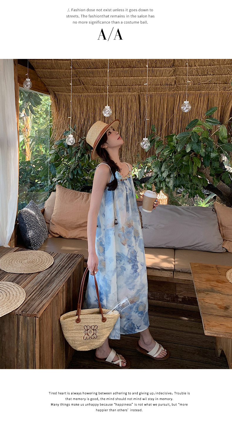 리얼 샷 플로랄 슬링 원피스 세트 2025 여름 할로우 카디건 해변 홀리데이 비치 롱 원피스 투피스 세트스토어 가기