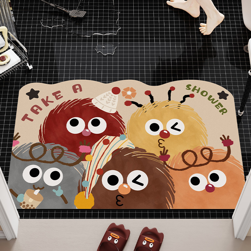 작은 괴물 규조토 진흙 욕실 흡수성 바닥 매트 만화 미끄럼 방지 발 매트 홈 화장실 욕실 문 매트