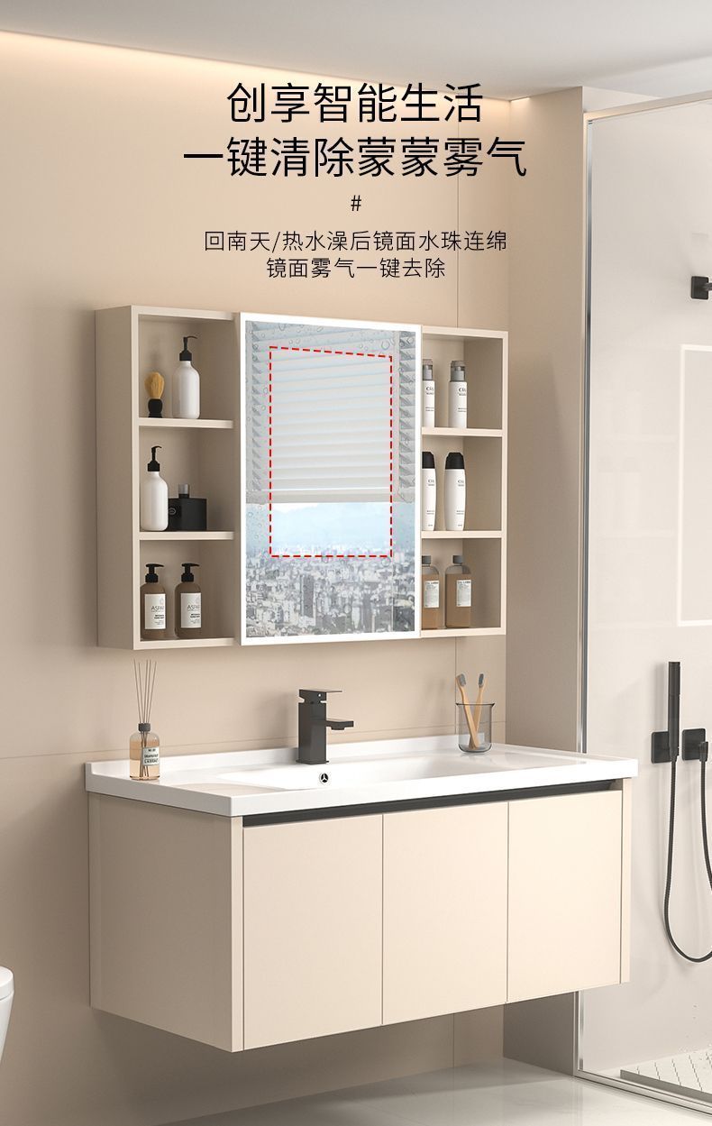 • 크로스보더 양문형 메인 캐비닛 + 세라믹 세면대 + 스마트 뷰티 미러 캐비닛 - 100CM*47CM 두꺼운 벌집 알루미늄 -