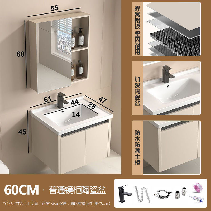 • 크로스보더 양문형 메인 캐비닛 + 세라믹 세면대 + 일반 거울 캐비닛 - 60CM*47CM 두꺼운 벌집 알루미늄 -