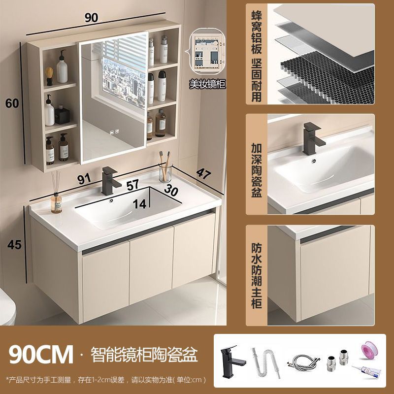• 크로스보더 양문형 메인 캐비닛 + 세라믹 세면대 + 일반 거울 캐비닛 - 90CM*47CM 두꺼운 벌집 알루미늄 -