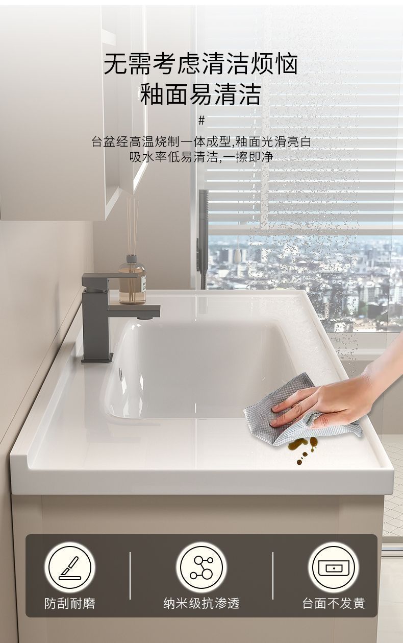 • 크로스보더 양문형 메인 캐비닛 + 세라믹 세면대 - 80CM*47CM 두꺼운 벌집 알루미늄 -