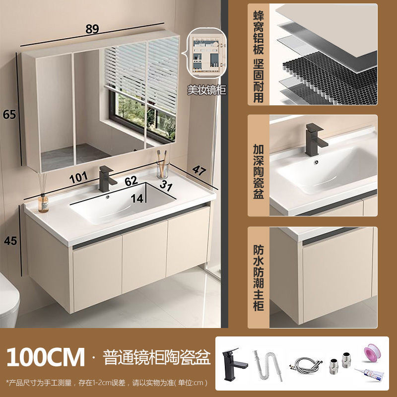 • 크로스보더 양문형 메인 캐비닛 + 세라믹 세면대 + 일반 거울 캐비닛 - 100CM*47CM 두꺼운 벌집 알루미늄 -