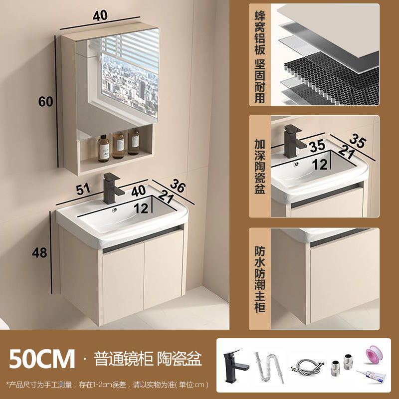 • 크로스보더 양문형 메인 캐비닛 + 세라믹 세면대 + 일반 거울 캐비닛 - 51CM*36CM 두꺼운 벌집 알루미늄 -