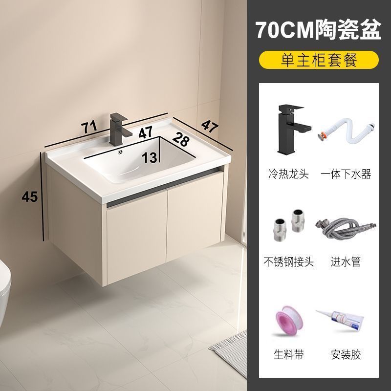 • 크로스보더 양문형 메인 캐비닛 + 세라믹 세면대 - 70CM*47CM 두꺼운 벌집 알루미늄 -