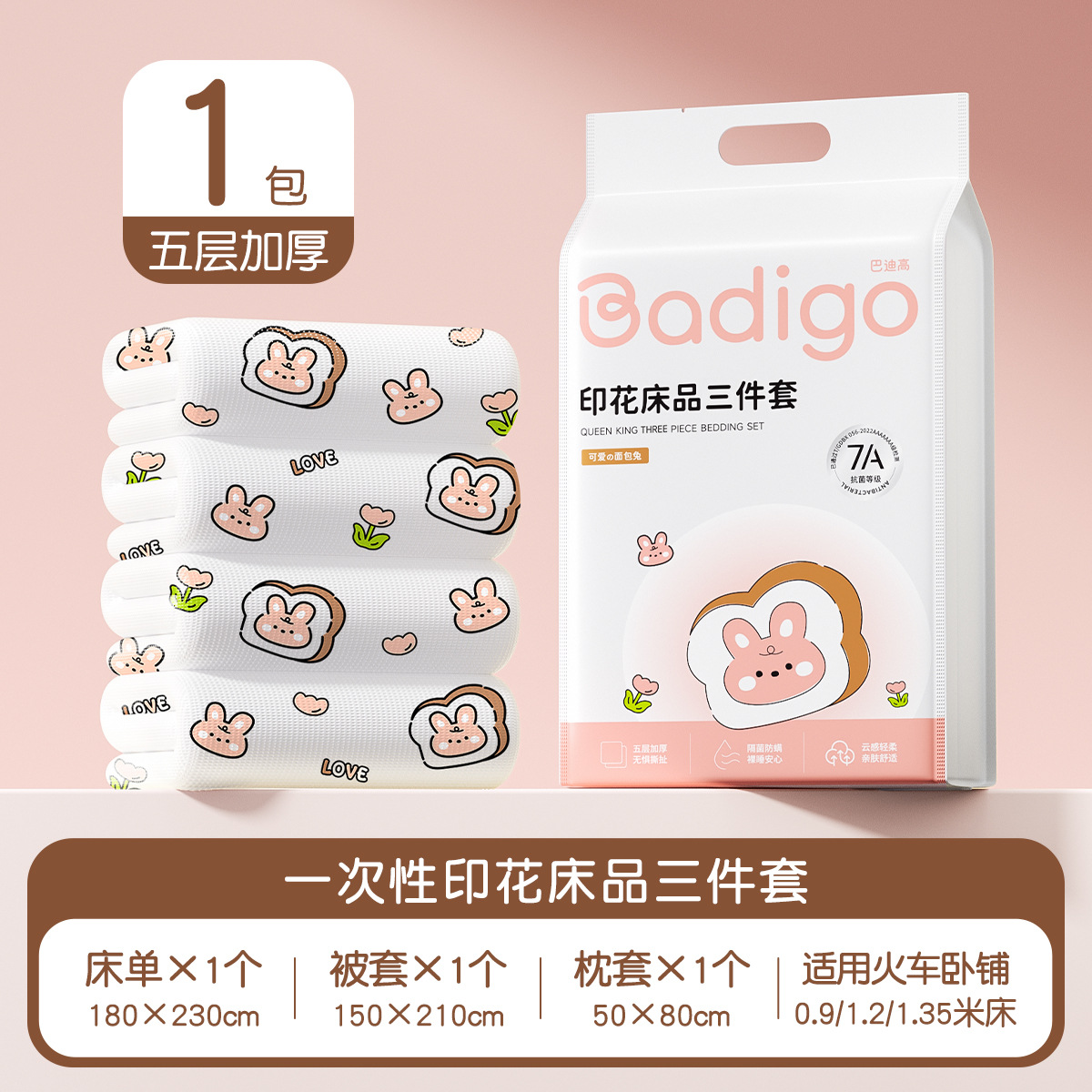 일회용 침대 시트, 이불 커버, 베갯잇, 4종 세트, 살균 및 두꺼운 더블 호텔 침구 진공 포장스토어 가기