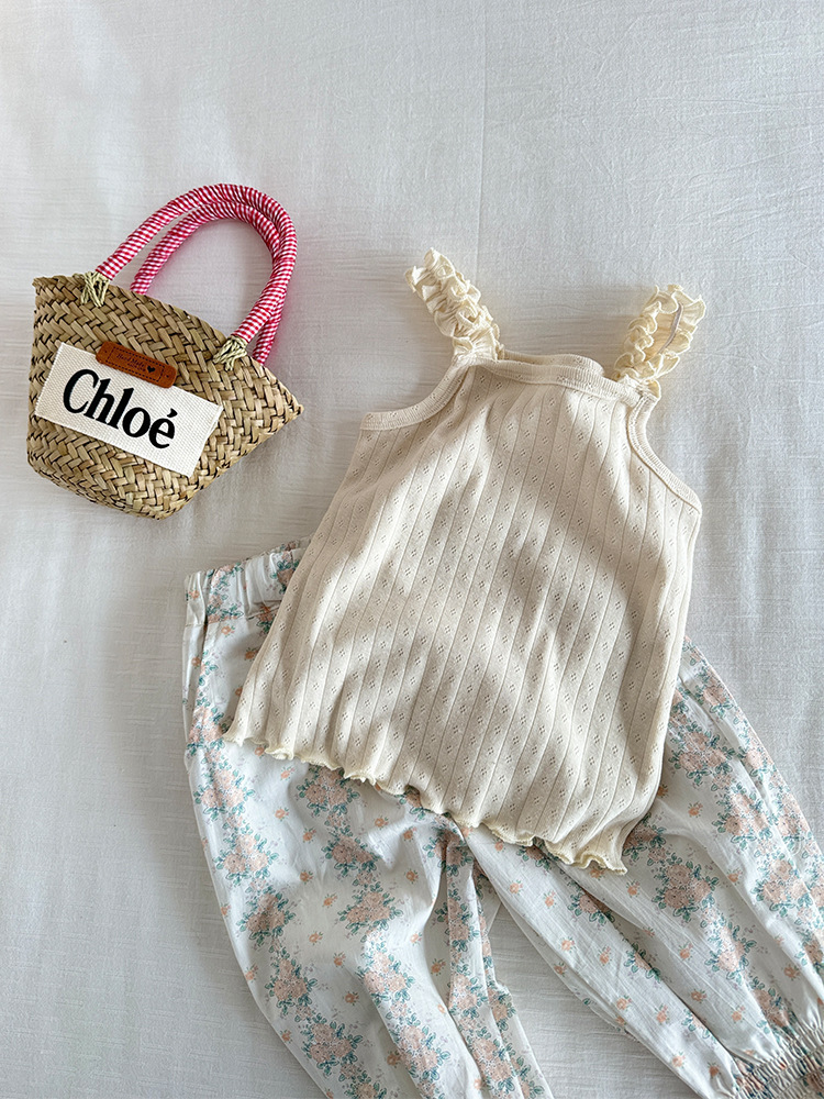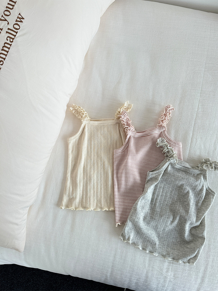 여자 카미솔 2025 아기 소녀 여름 어린이 한국식 올매치 귀여운 핏 스트라이피 컬러 라인 카미솔