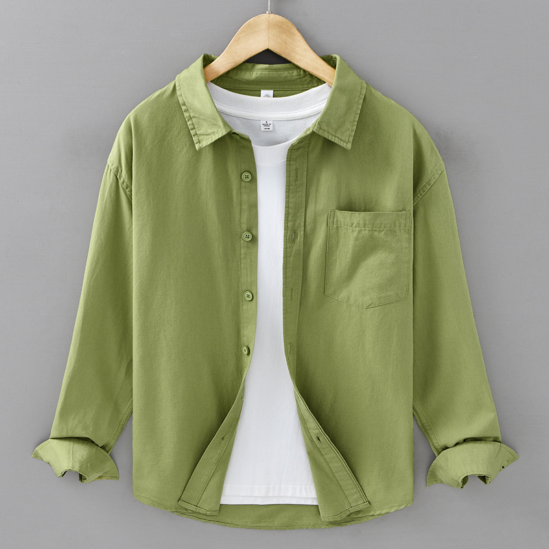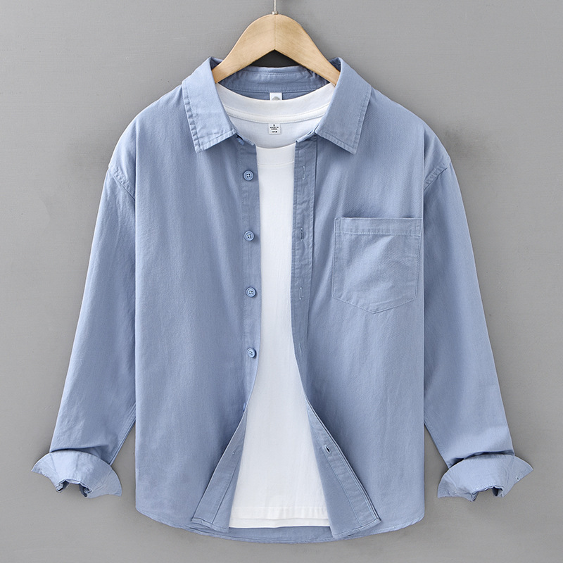 8708 기본 남성 순면 긴팔 셔츠 화이트 예술적 남성 봄 다목적 청소년 심플 캐주얼 셔츠