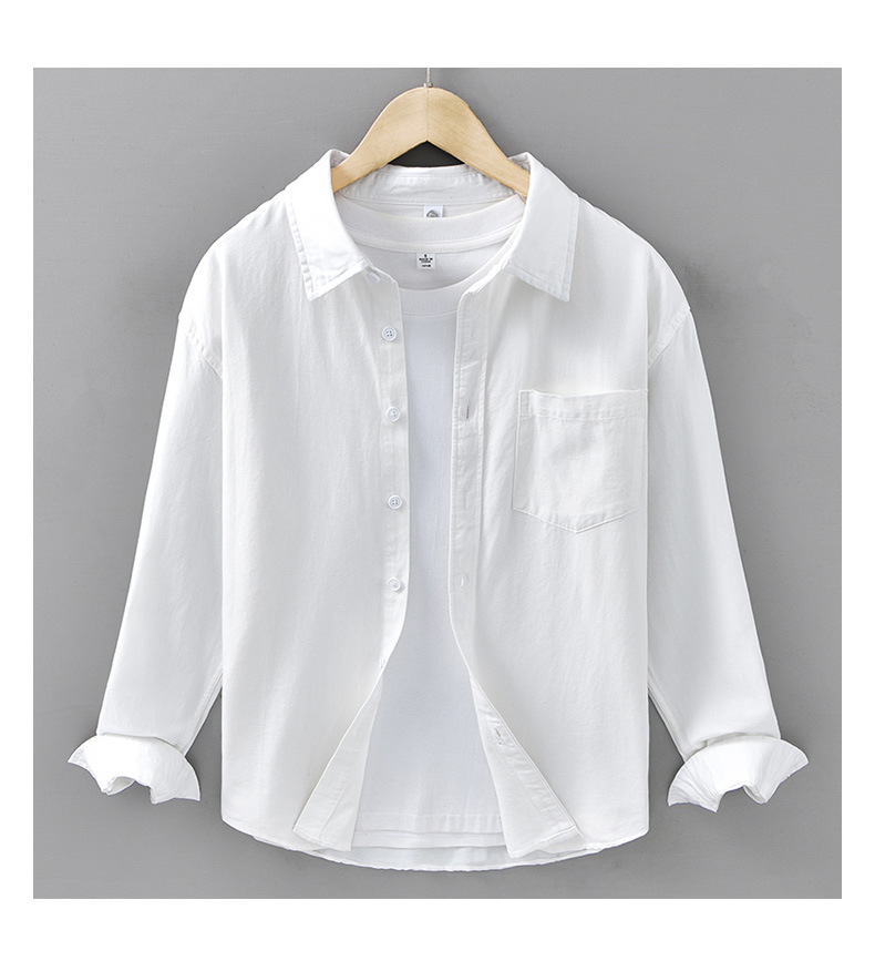 8708 기본 남성 순면 긴팔 셔츠 화이트 예술적 남성 봄 다목적 청소년 심플 캐주얼 셔츠스토어 가기