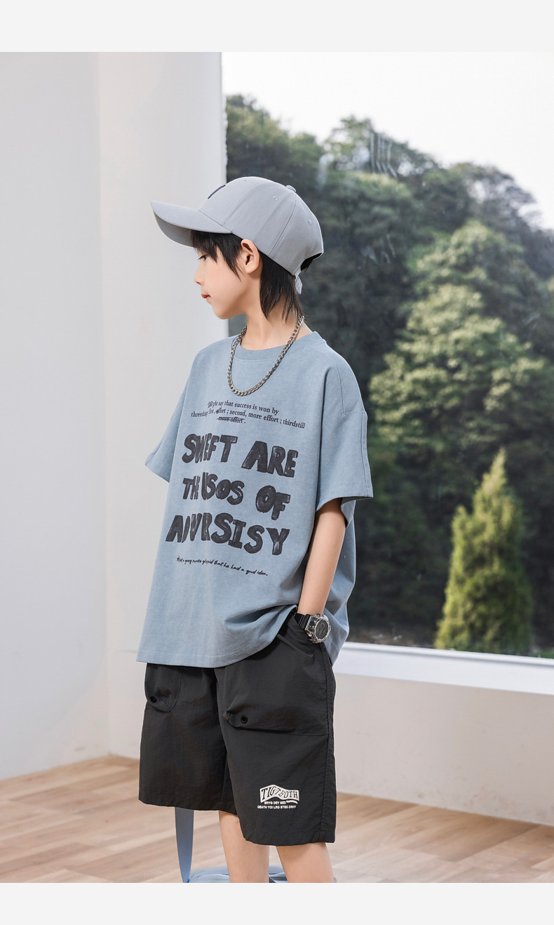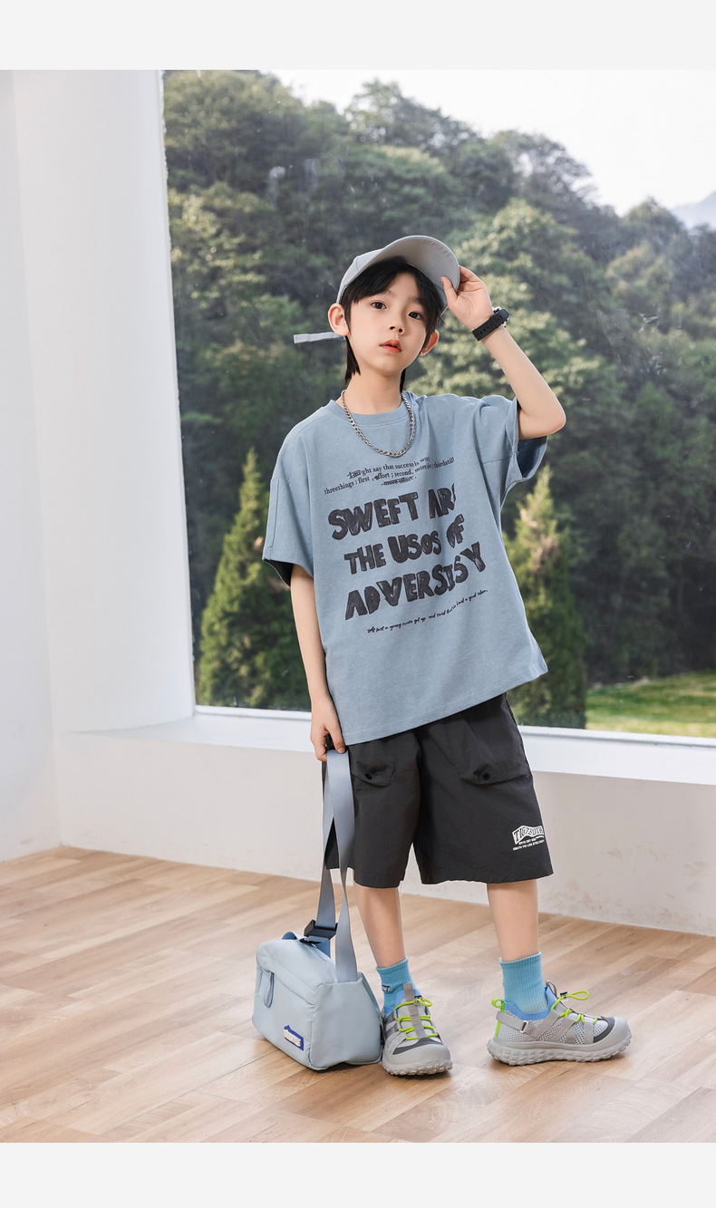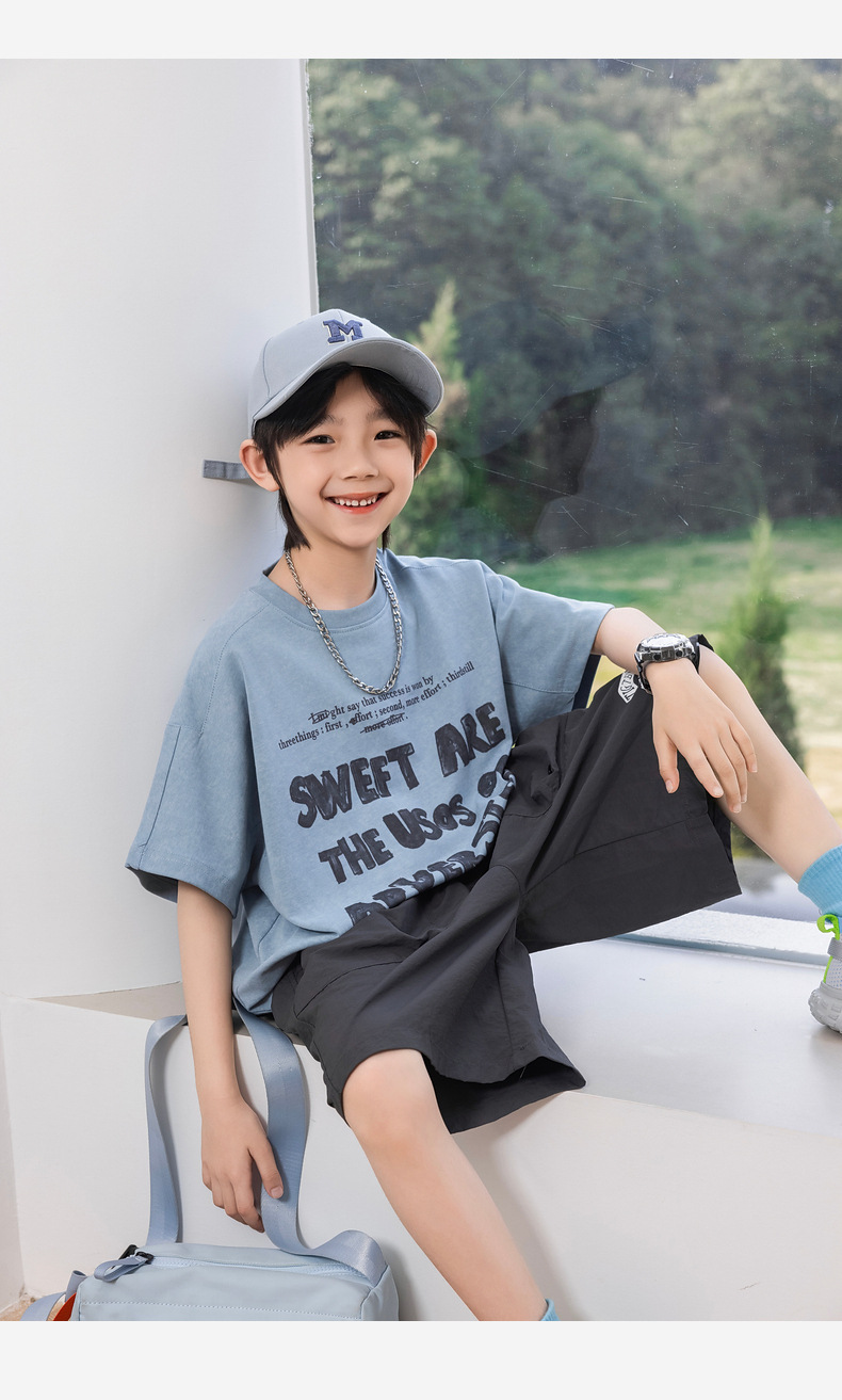 판다 Yuanyuan 2025 뉴 보이즈 여름 세트 빠른 건조 반바지 헤비 코튼 반팔 여름 착용