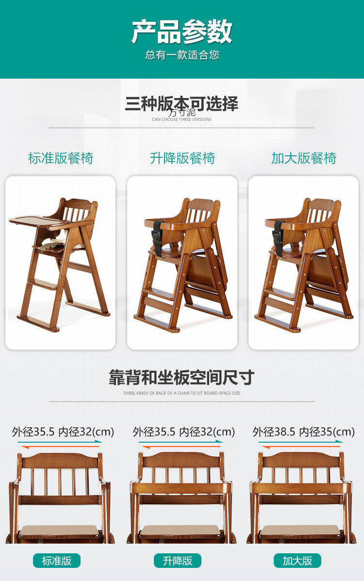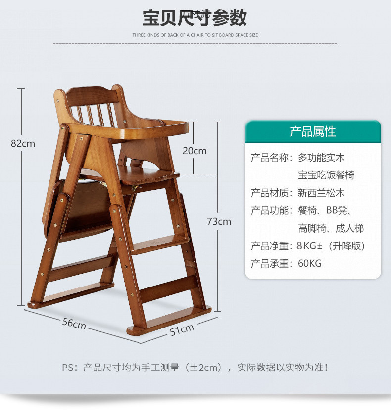 아기 식사 의자 어린이 식탁 및 의자 가정용 단단한 나무 아기 다기능 접이식 좌석 의자 공장스토어 가기