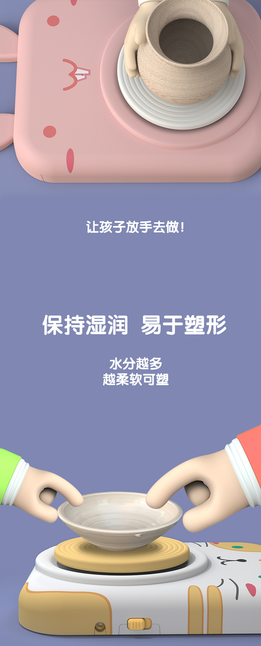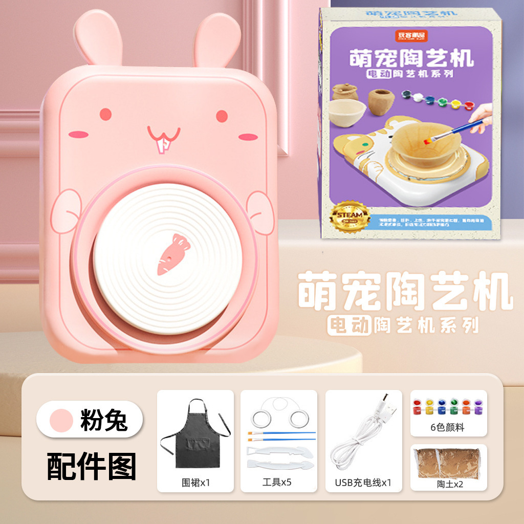 • 핑크 토끼 도자기 기계 [점토 2개 포함] 색상 상자