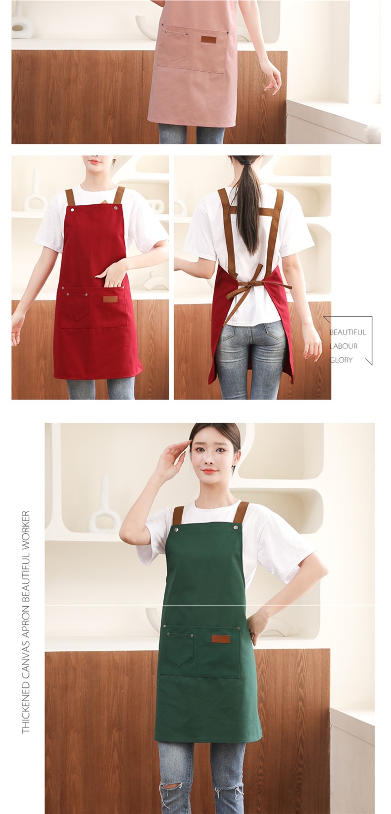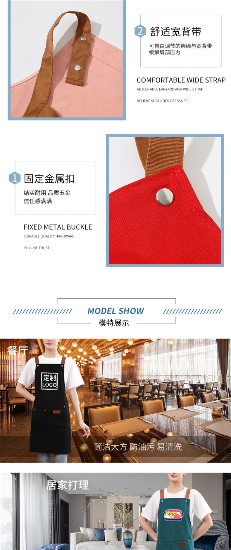 로고 프린트가 있는 캔버스 데님 작업 앞치마, 패셔너블한 커피 레스토랑, 밀크티 가게, 꽃가게 남녀