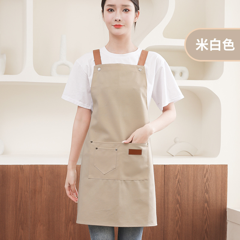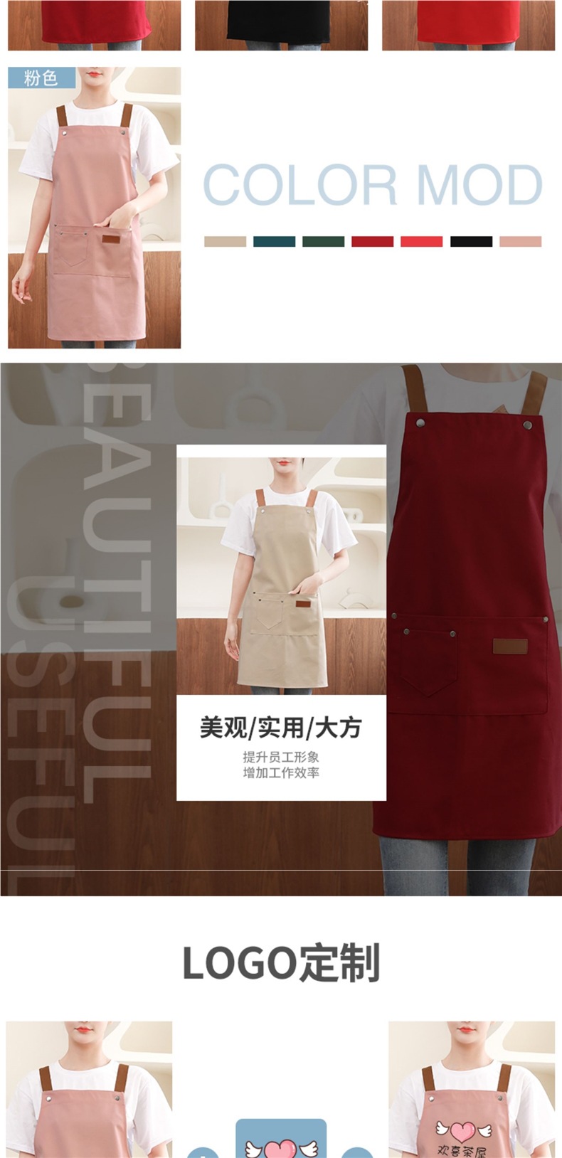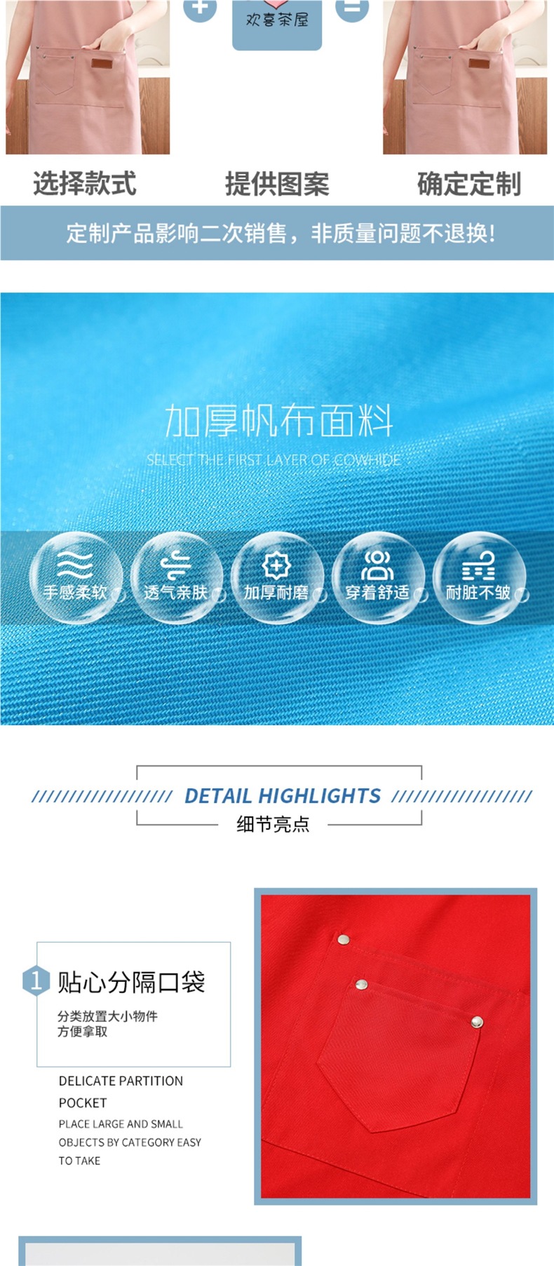 로고 프린트가 있는 캔버스 데님 작업 앞치마, 패셔너블한 커피 레스토랑, 밀크티 가게, 꽃가게 남녀스토어 가기