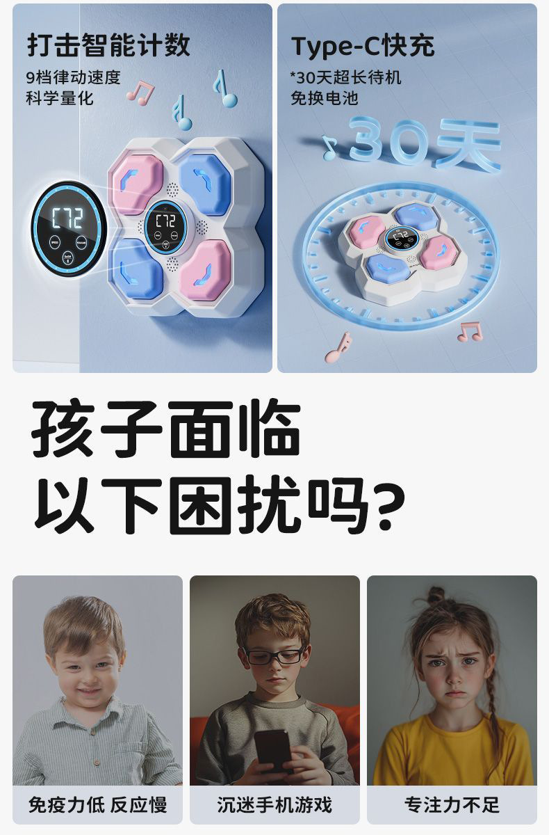 어린이 복싱 대상 블루투스 음악 권투 기계 홈 반응 실내 전자 표적 산다 훈련 공장 도매