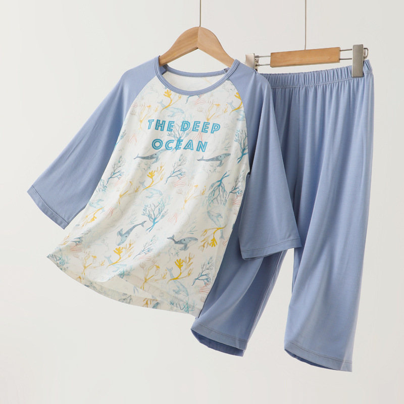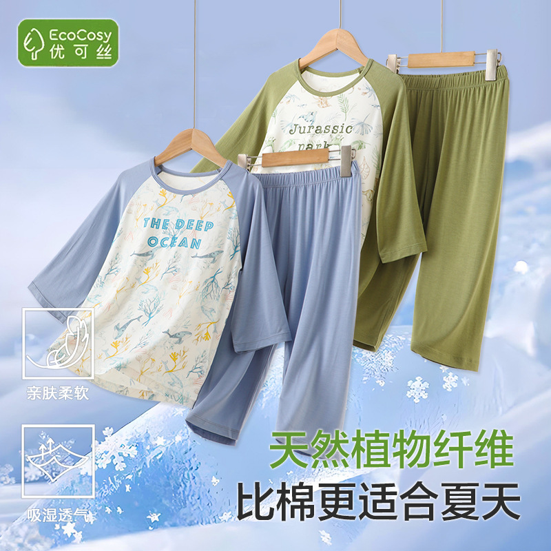 남학생 잠옷 여름 얇은 에어컨 옷 어린이 집 옷 카테고리 코튼 모 소년 반팔 세트 중대형 어린이스토어 가기