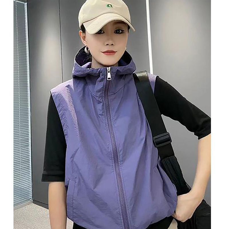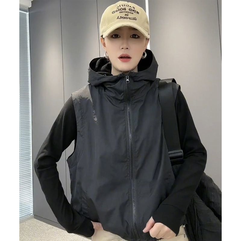 여름 통기성 봄과 여름 얇은 후드 지퍼 여성 조끼 새로운 스타일 태양 보호 패션 올 매치 태양 보호 의류스토어 가기