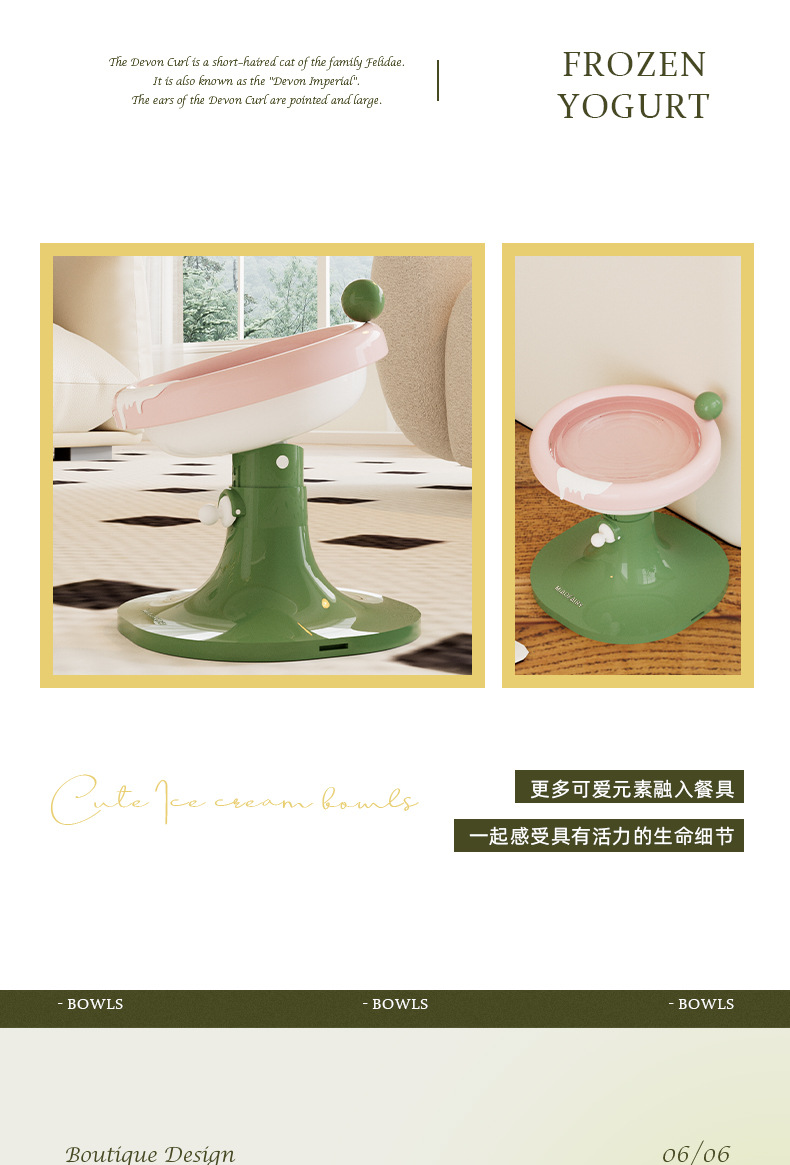 • .✷§§☍☍✷조절 가능한 아이스크림 고양이 그릇 (레몬 말차)✷§§☍☍✷