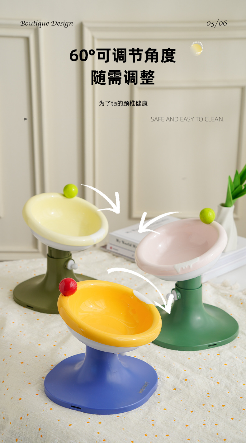 • .✷§§☍☍✷조절 가능한 아이스크림 고양이 그릇(노란색-녹색)✷§§☍☍✷