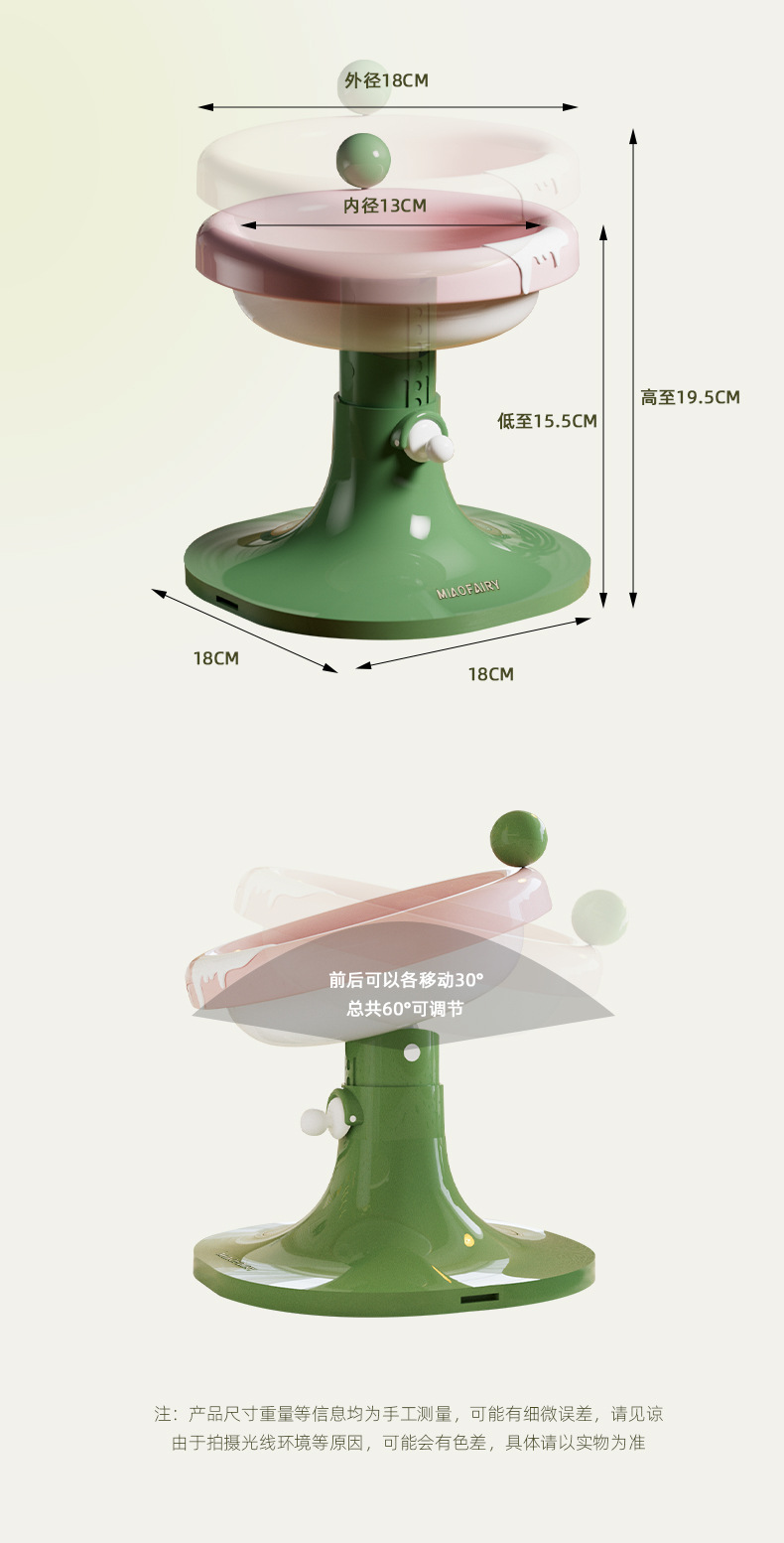 • .✷§§☍☍✷조절 가능한 각설탕 고양이 밥그릇 (핑크 그린)✷§§☍☍✷