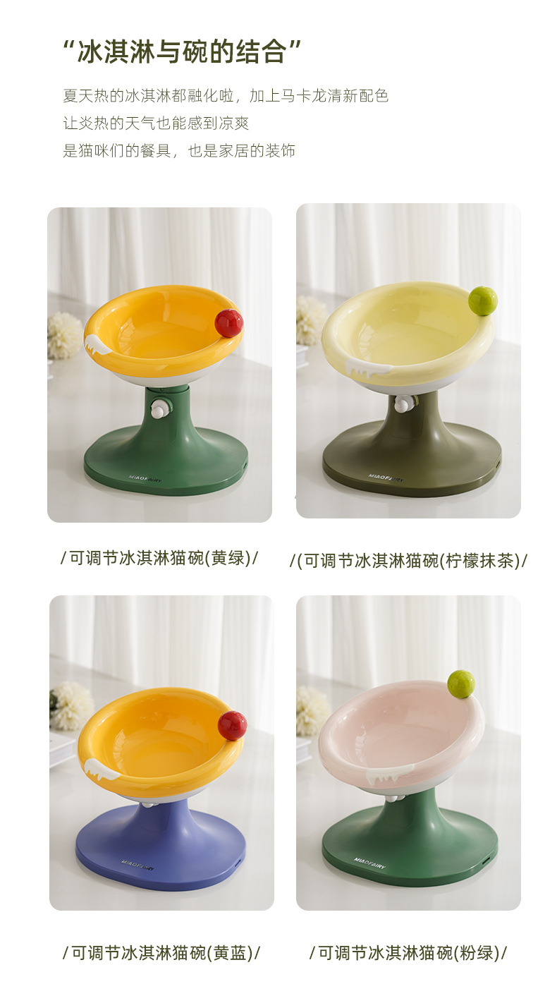 • ✷§§☍☍✷조절 가능한 아이스크림 고양이 그릇 (레몬 말차)✷§§☍☍✷