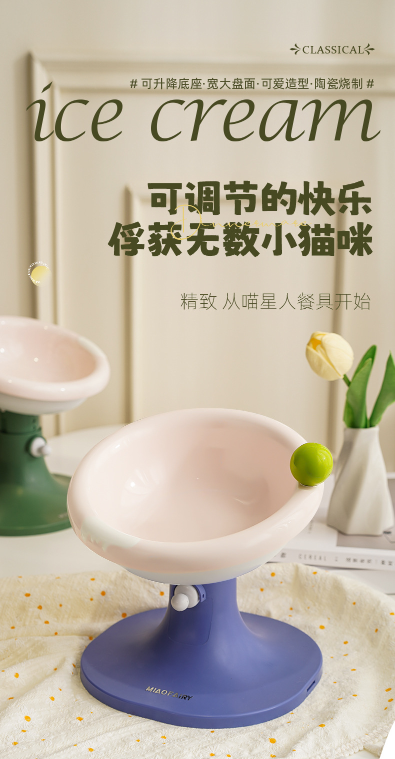✅탁상용 아이스크림 세라믹 고양이 그릇 고양이 먹이 그릇 개 그릇 틸팅 가능한 애완 동물 먹이
